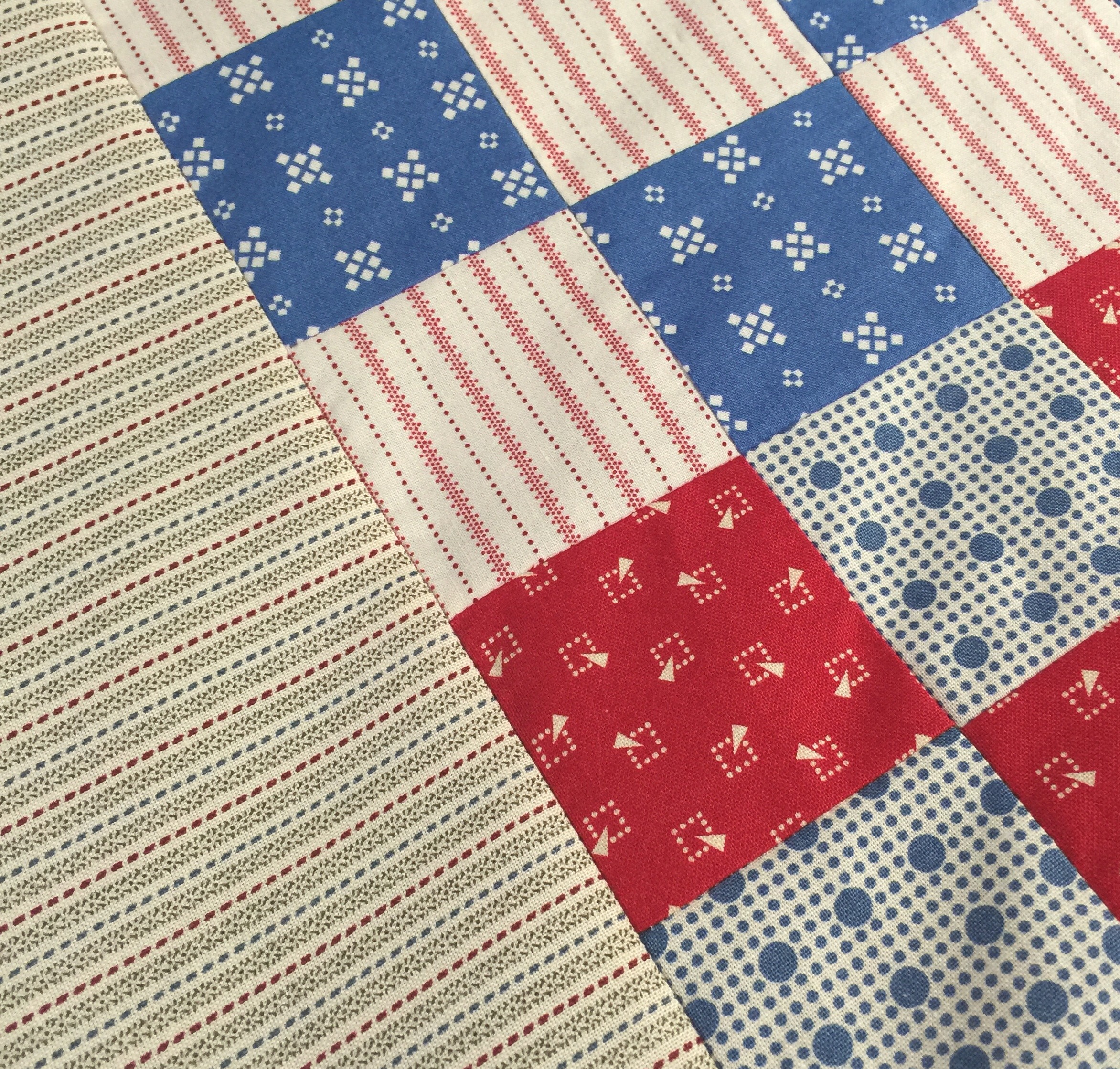 I seem to have a case of quilter’s ADD right now. Perhaps it is just settling back in after a time away and not yet knowing where to focus my attention in the sewing room. I did add borders to my 16-patch top. Now I need to figure out a backing for it.