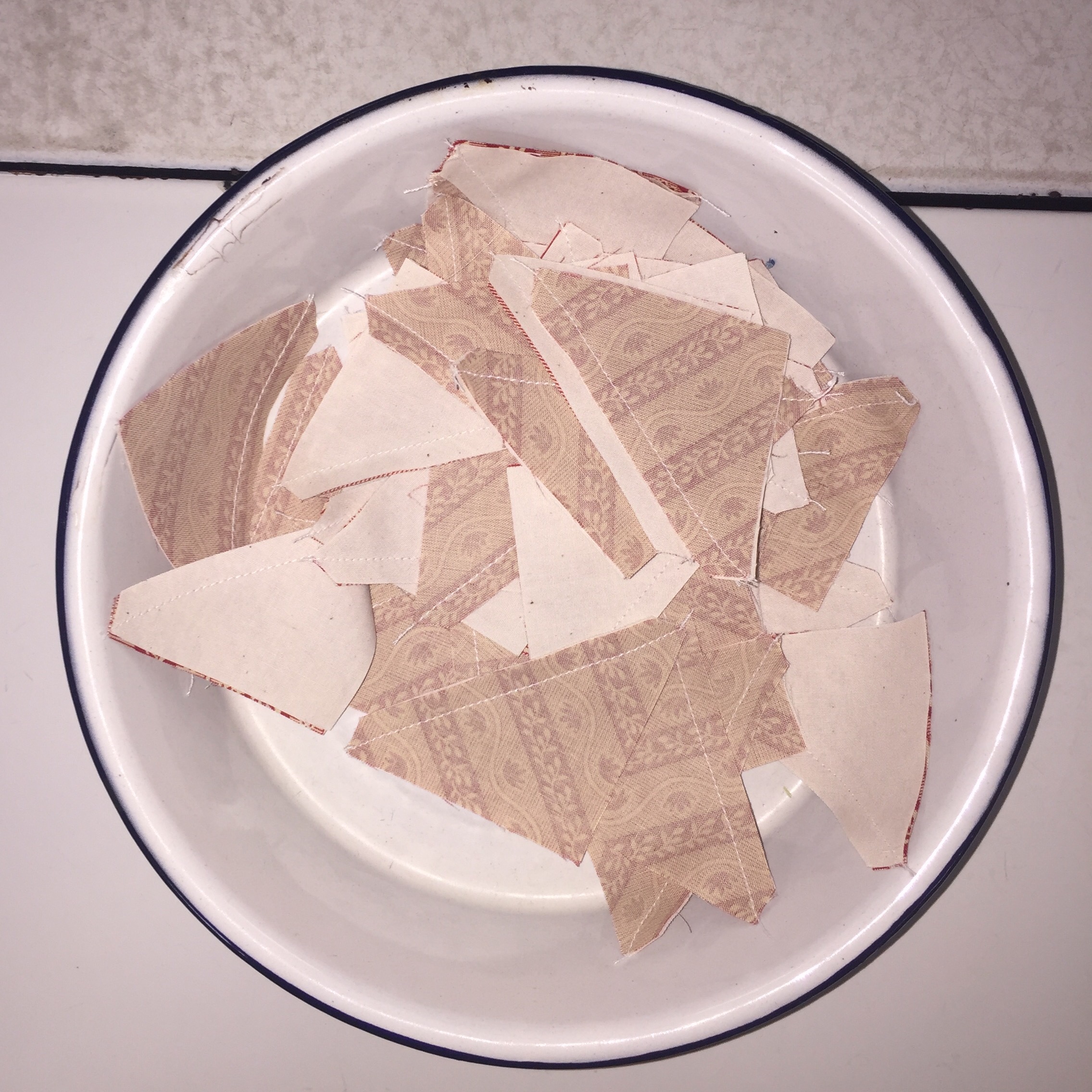 I didn’t work on my broken dishes swap blocks while I was gone, but I have been making the HSTs as leaders/enders this week and making a bit of progress that way.