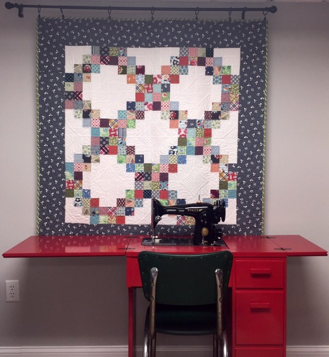 I needed to evict some serious dust bunnies from the quilting room last week. I decided to try rearranging a few things in the process. I really wanted more design wall space. My sewing room is very large, but wall space is at a premium. I also wanted to get my Singer 201 out where I could use it.
