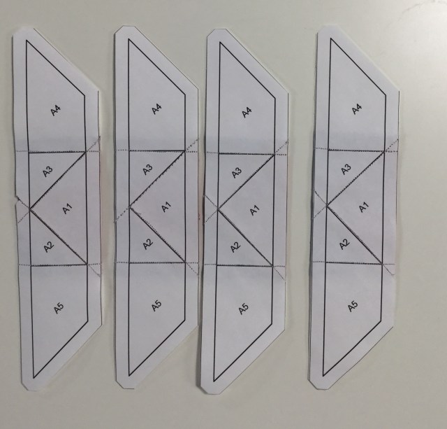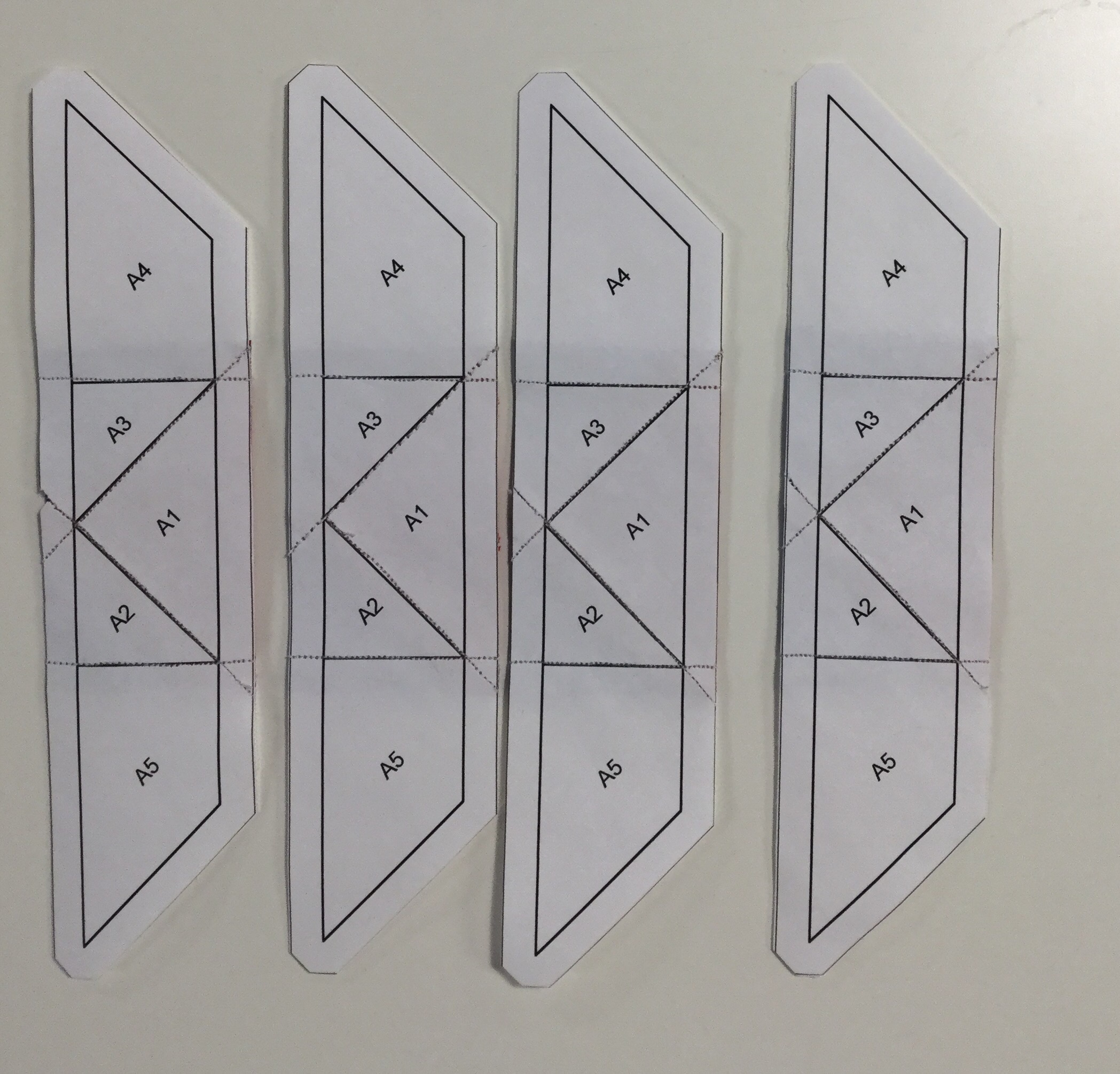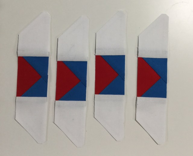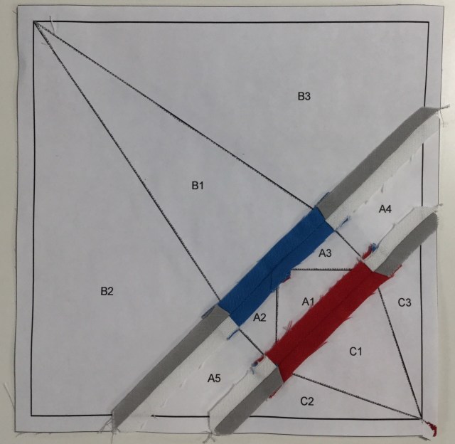I like the way she blunted the tips of the pattern pieces. This makes it easier to line up with the other paper pieced bits.