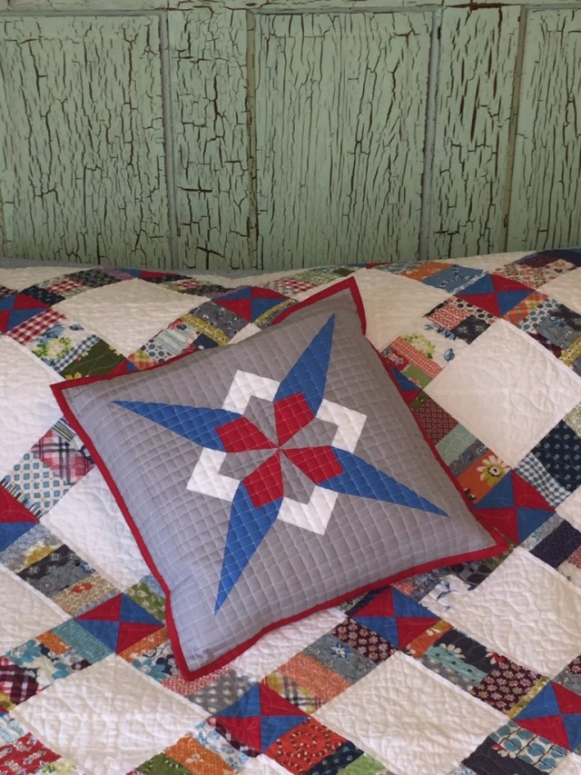 Pretty cool, huh? I think there could be some awesome secondary designs if you made more blocks. I decided to add 2 1/2 inch strips to the sides, quilt it and make a pillow.