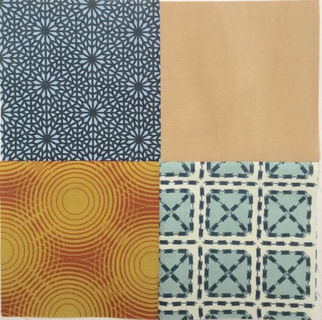 I like the background fabric you chose for your fabrics. The finished quilt will be warm and autmny.