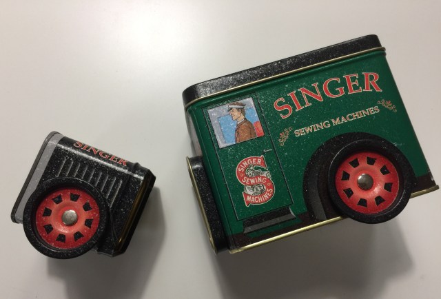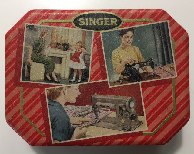 I fell in love with vintage Singer sewing machines long ago. Once you get interested in something, you begin to collect all things pertaining to it! Here is a subset of my Singer Sewing collection, my tins. I don’t remember where I got most (any?) of these or if any of them are available anywhere. But they are fun and I thought I would share them with you today.