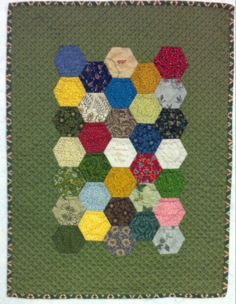 These are a bit bigger at one inch. This was hand quilted every 3/8 inch. These fabrics were from the very first Smithsonian collection. Remember that?