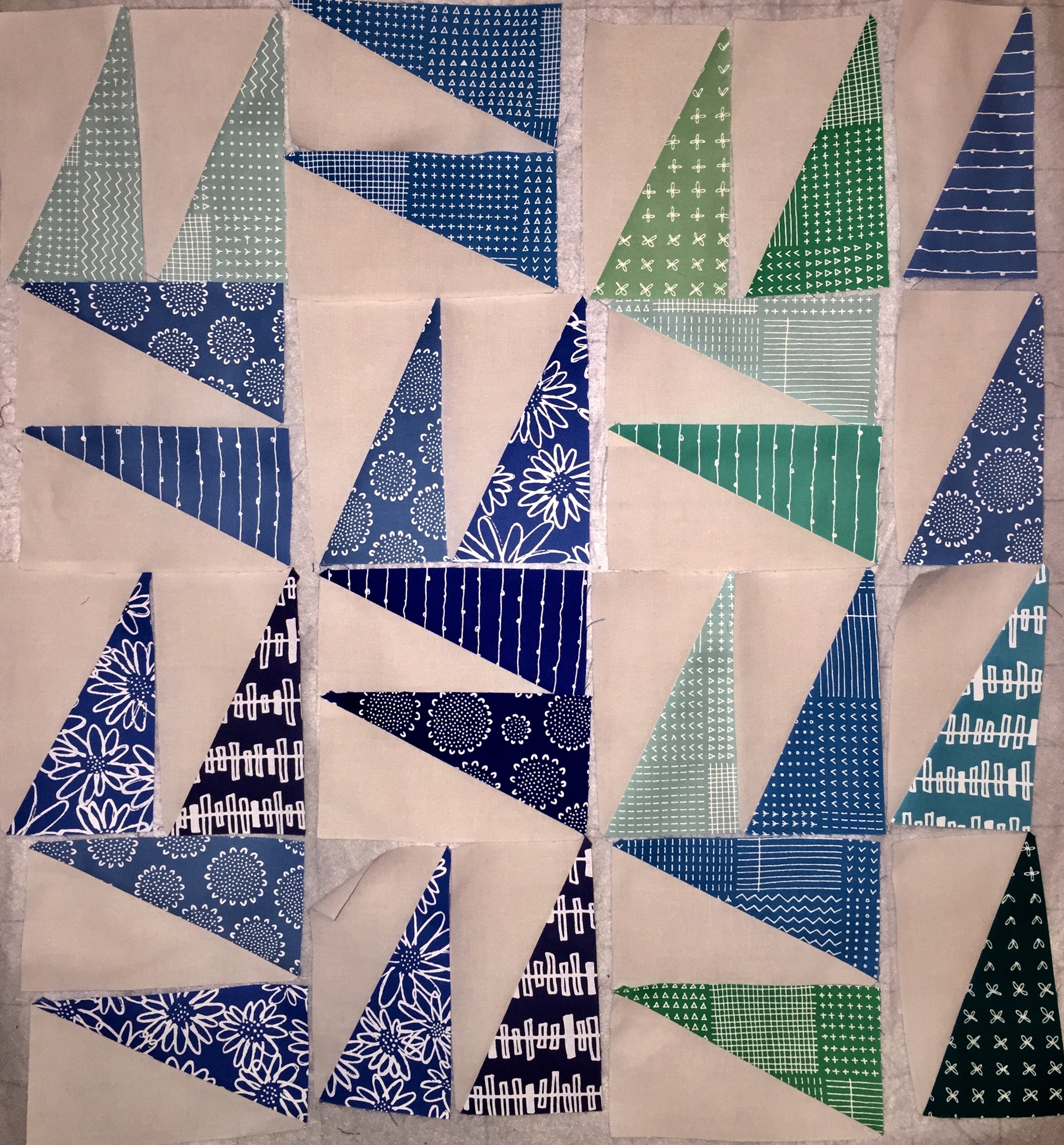I’ve pieced all my half rectangles blocks and now it is time to play!