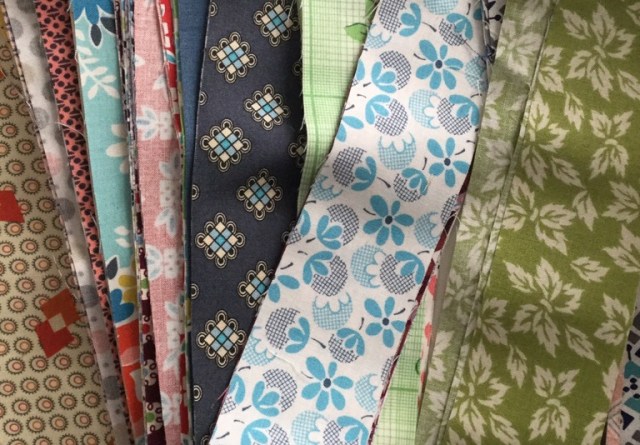 I cut these 2 inch strips of Denyse Schmidt prints ages ago.