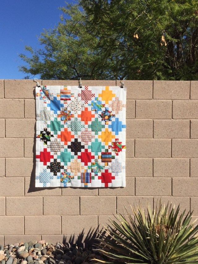 What a gorgeous little quilt top and OH MY what a grand wall to hang it on for photos!