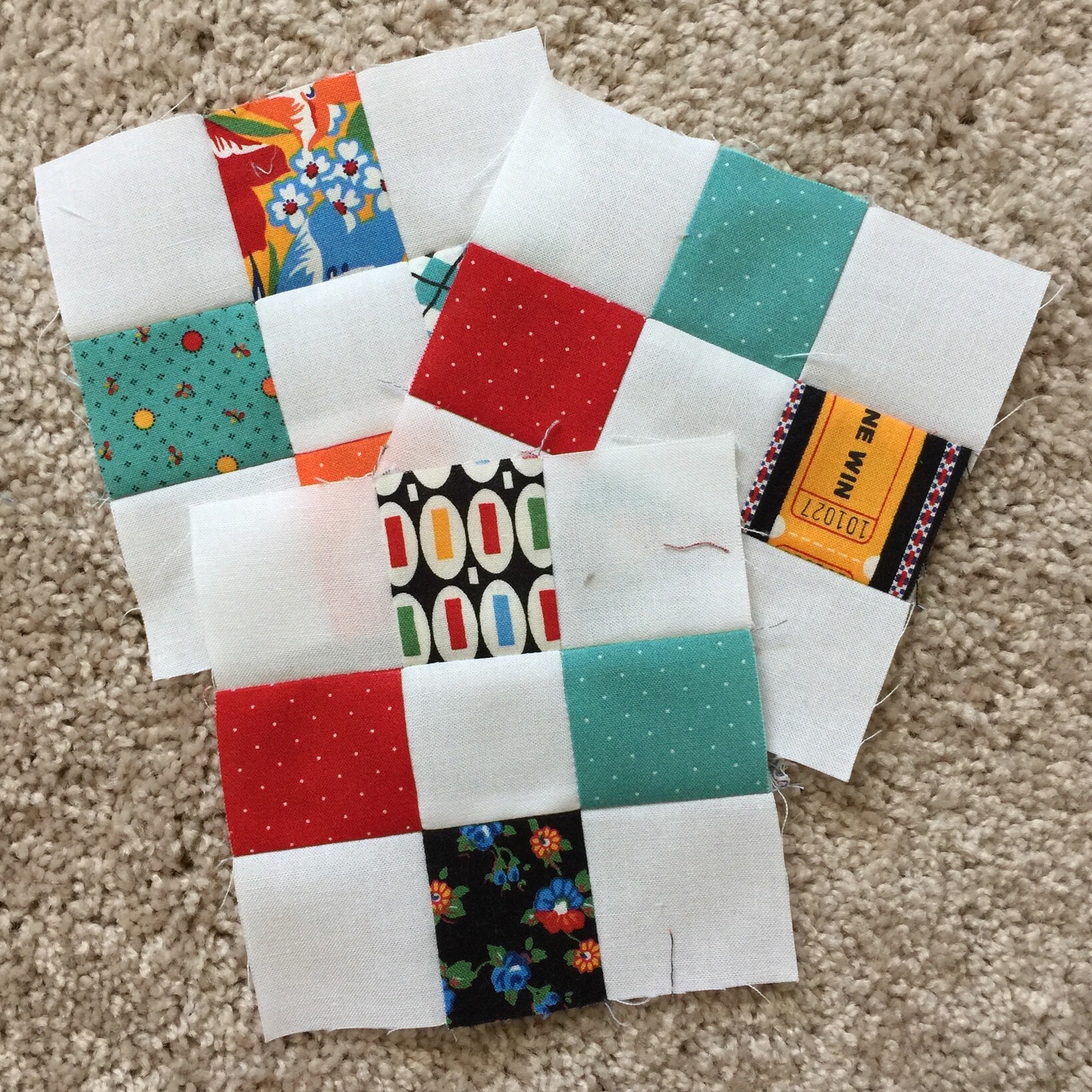I don’t think this top can be made without a design wall! Even then, I ended up doing some ripping. The 9 patches finish at 4 1/2 inches.