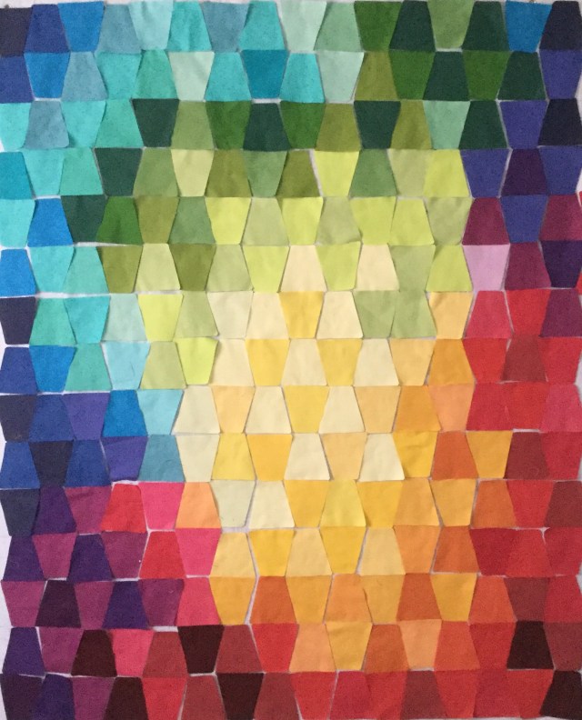Um, maybe your ‘helper’ is really your supervisor?? LOL I love your temporary design wall – genius! Have fun with your tumbler quilt. The color gradation is going to look so good when it is sewn together. Thanks for sharing on Main Crush Monday!