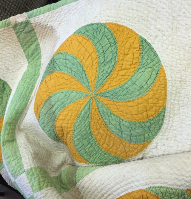 That first pattern looks an awful lot like a pattern I have named Cleopatra’s Fan. It was a free download online. At some point I want to try making a block or two. All of the vintage quilts are so pretty. I’d have a difficult time leaving any behind!