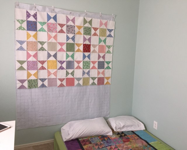 No worries about no response. I’ve been slow myself! How nice to have your parents visiting. So why is your daughter’s quilt living at your house? It really goes nicely on the lime green sheets. =)