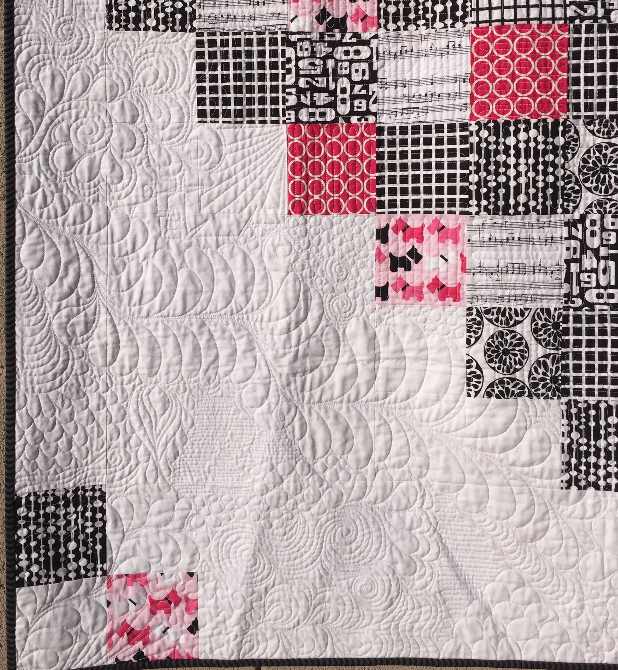 The piecing went very quickly. I had a lot of fun with the quilting.