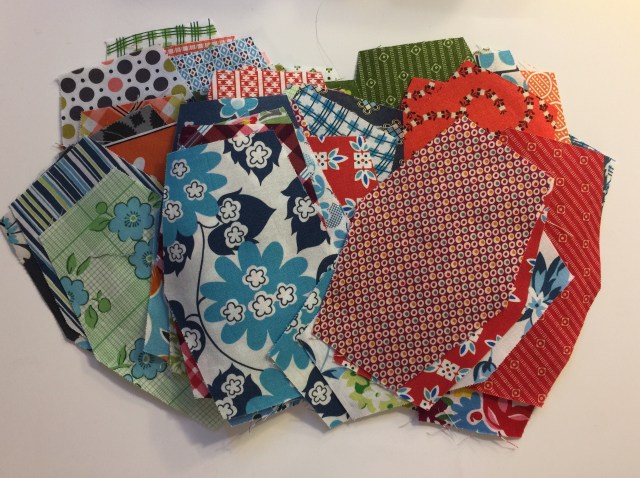 Nice fabrics and cute shapes. What size are these hexies and are they hand pieced? Thanks Katy.