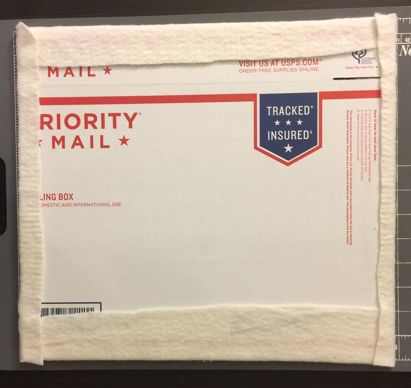 There are directions to be found online for fancier design boards, but mine will probably be tossed out when I leave here so I didn’t want to put much time or any money into it. So I used a scrap of batting and a box. Here is the not so fancy back.