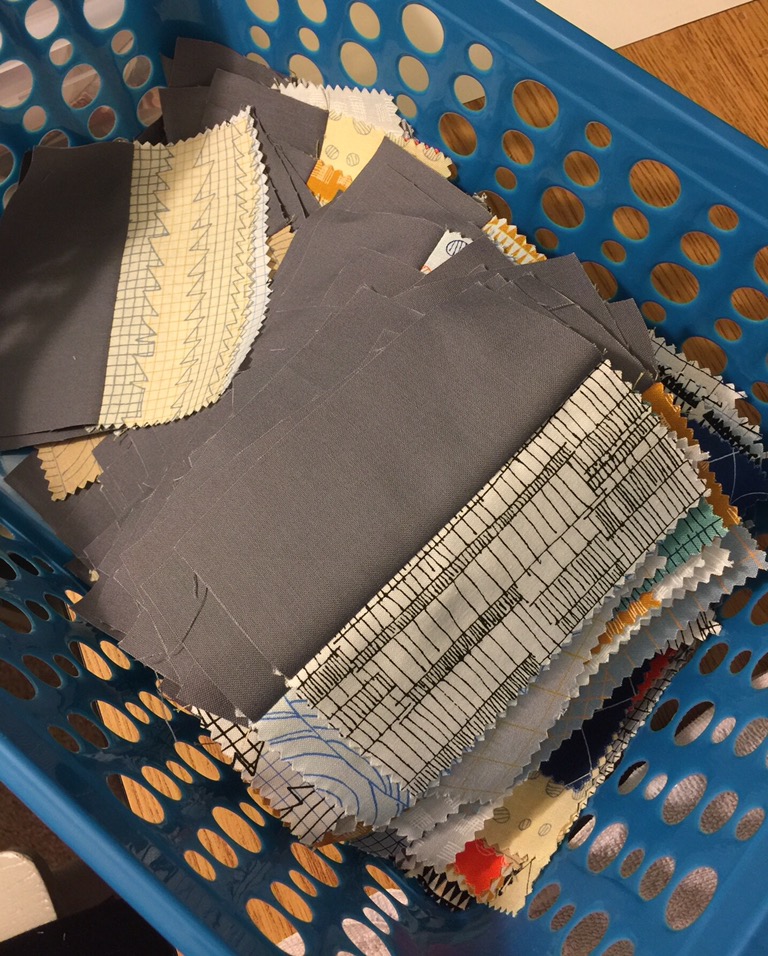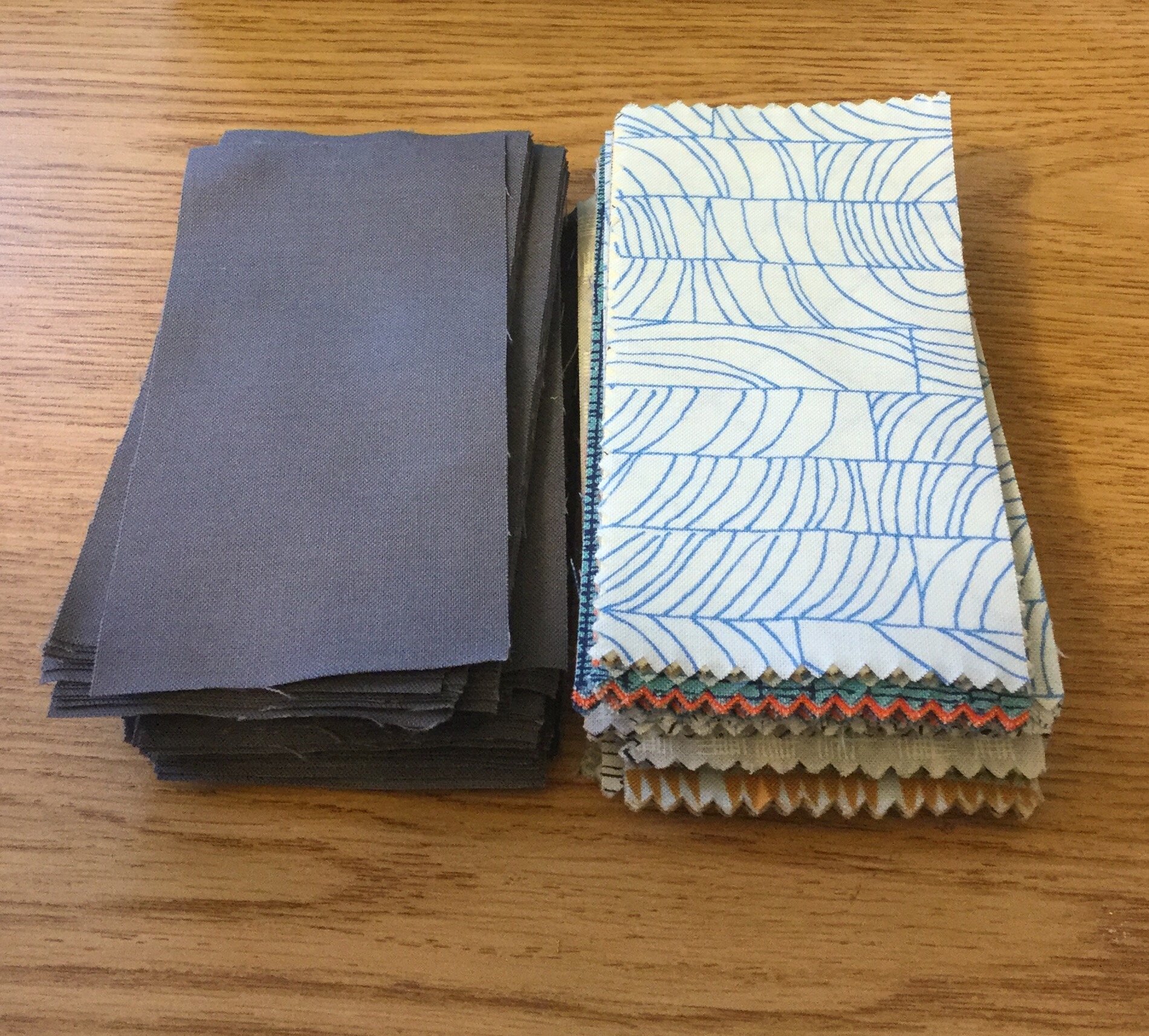 I picked up some Kona at the local JoAnns and cut them all up 2 1/2 by 5 inch rectangles.