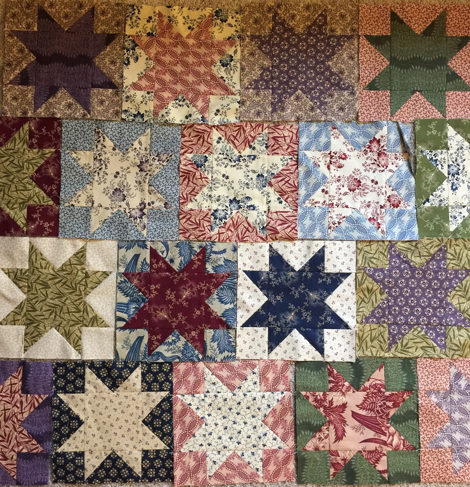 I love the star blocks. Maybe if you border them and add cornerstones it would let each star ‘tell their own story’. Love the colors.