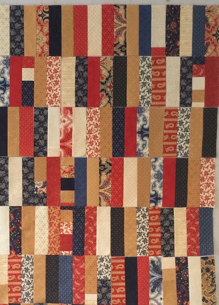 I wanted to incorporate all the pieces I had left, so some strips are pieced. I think it adds a lot of interest. I realized that I had enough leftovers to piece the whole top like this.