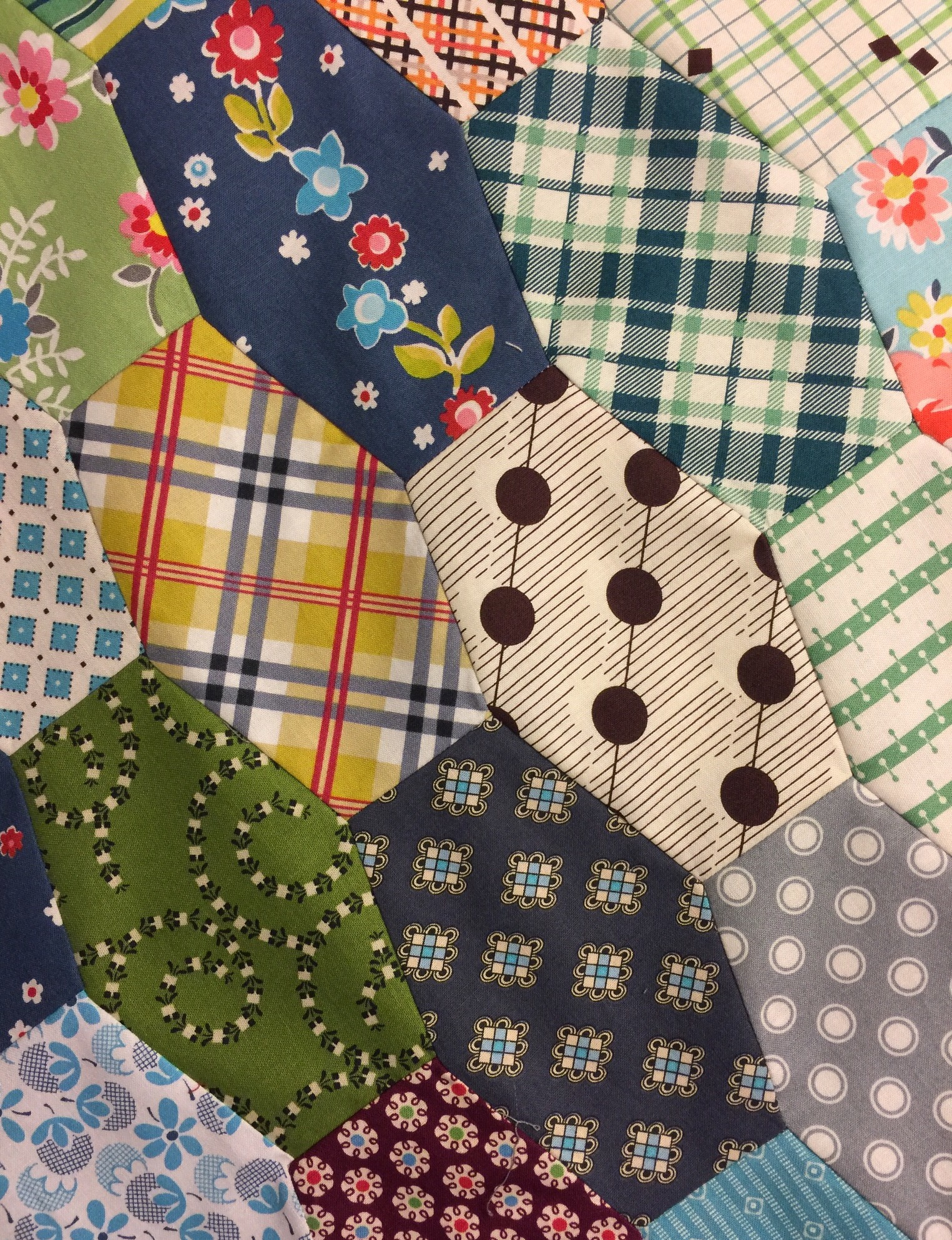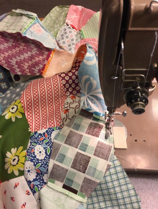 I love the shape of these pieces but they look difficult to put together. It will be an interesting quilt top when it’s together….so fun to look at all the different fabrics!