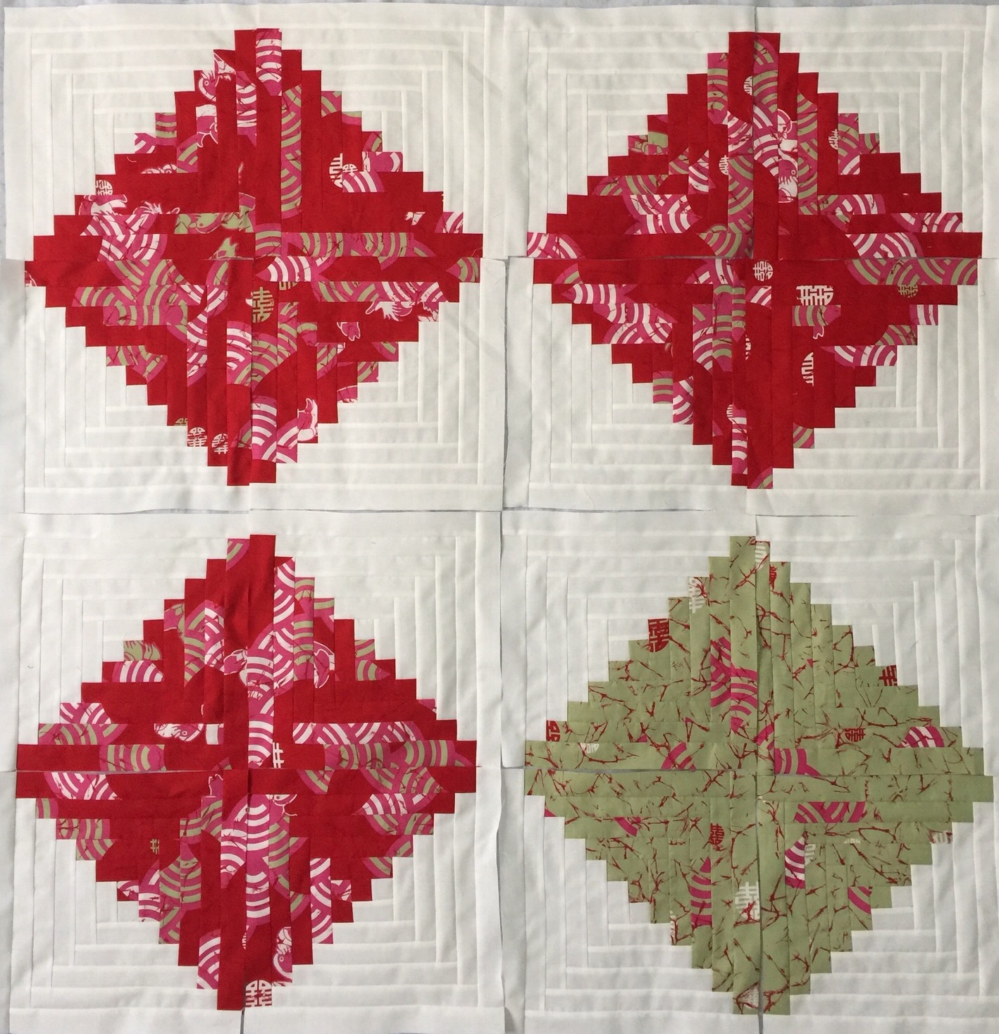3. Log cabin. I finished all the blocks I could, but decided to cut and make a few more when I get home so this has moved ahead, but is still a WIP.