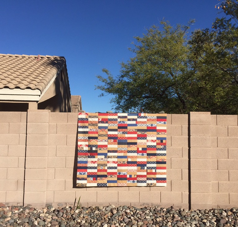 I love it! I think the 2nd or 3rd quilt (maybe 4th) quilt I ever made was a coin quilt – and it’s still one of my favorites! That wall is perfect; I wish I had something similar near me to hang quilts from.