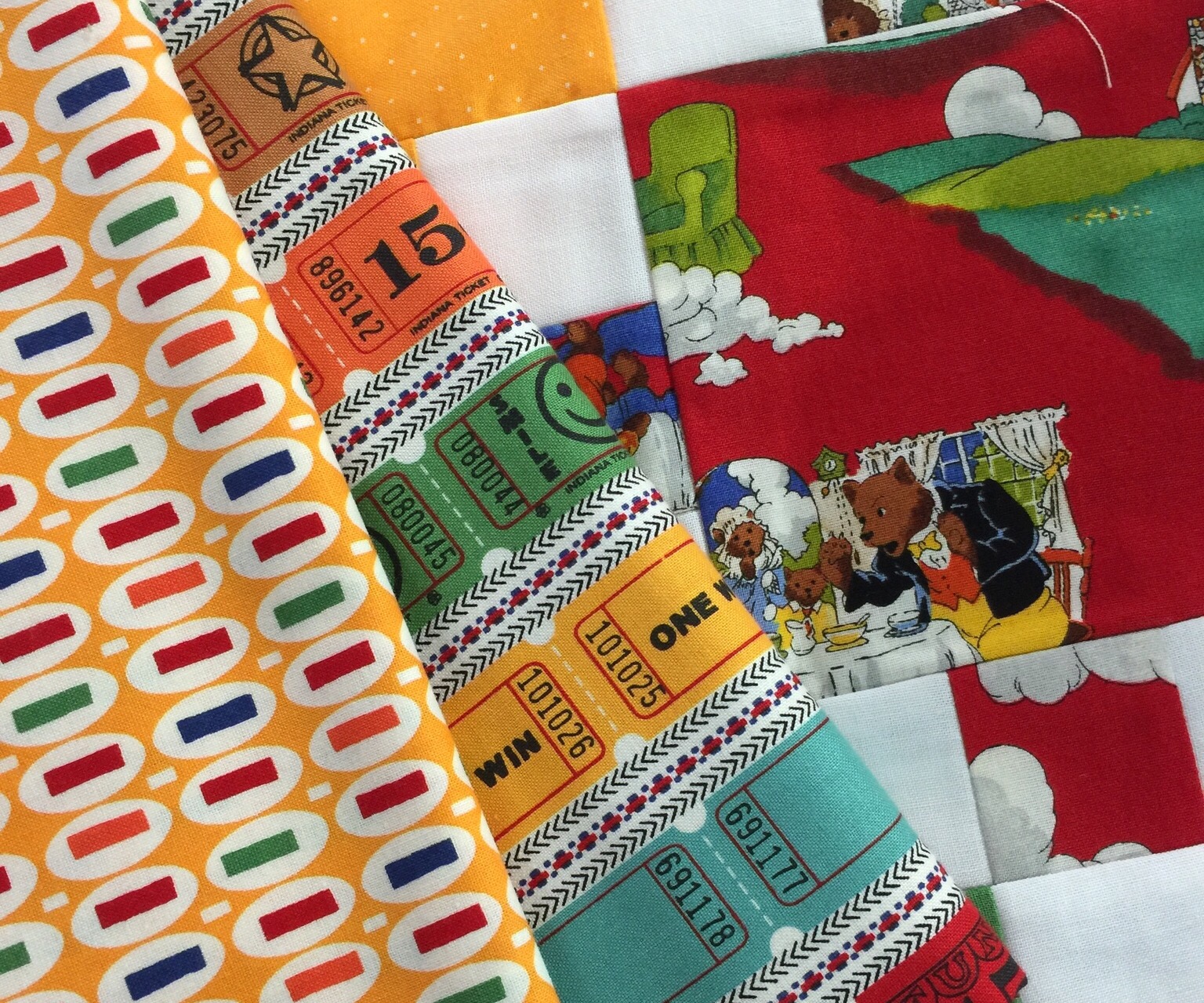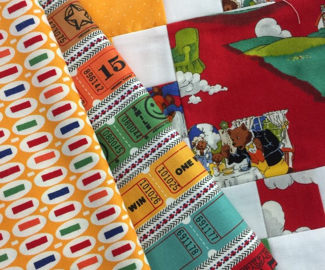 So many happy fabrics! Love that ticket print. I just bought new needles for binding – the quilt shop owner told me longer needles are less stressful on the fingers. I’m gonna give them a try. Have fun quilting all those fabulous tops!