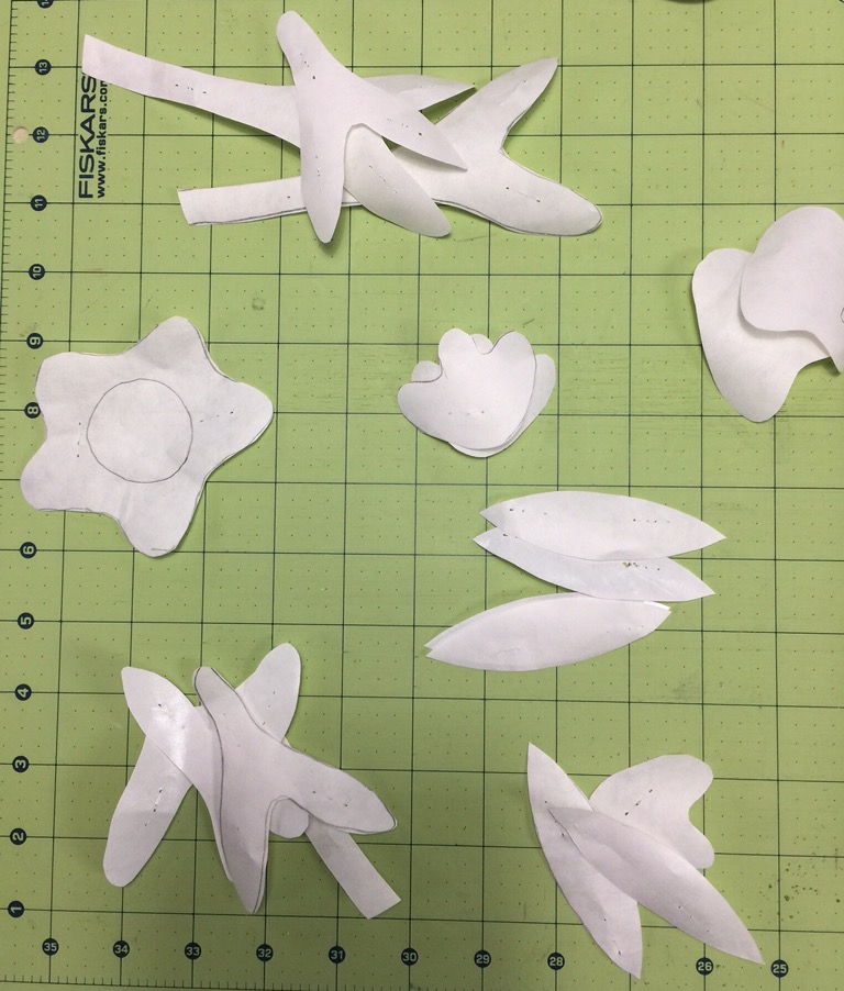 As I find shapes I think might work, I am tracing them onto freezer paper and cutting them out.