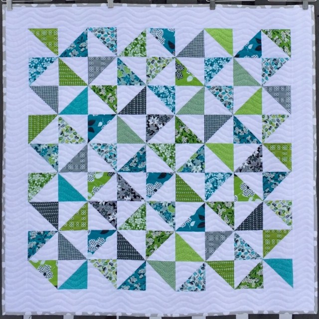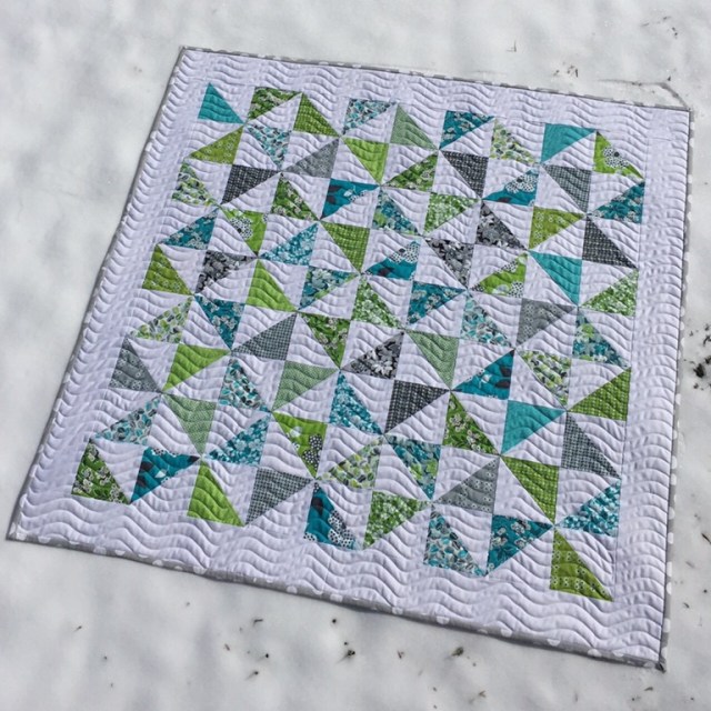 Love the wavy quilting on this one. Along with the colors, it gives a nautical vibe to the quilt.