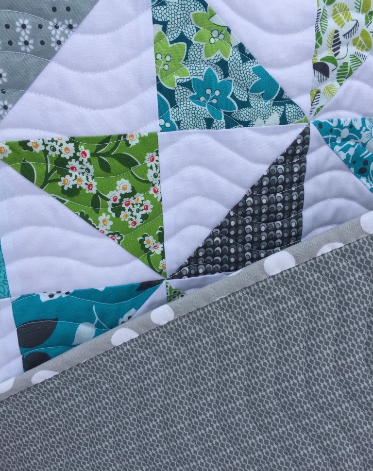 Love the wavy quilting on this one. Along with the colors, it gives a nautical vibe to the quilt.
