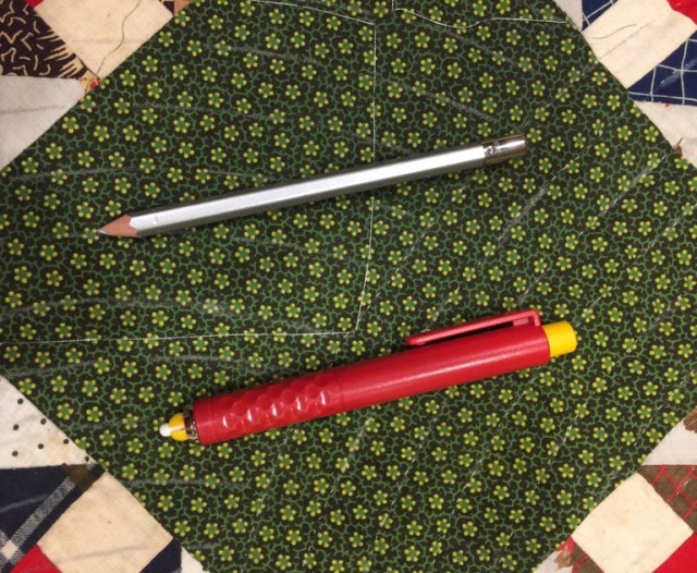 I think you’re quilting looks just fine. Thanks for sharing your marking tools; I’m always learning something new from you. You are making really good progress on the quilt!