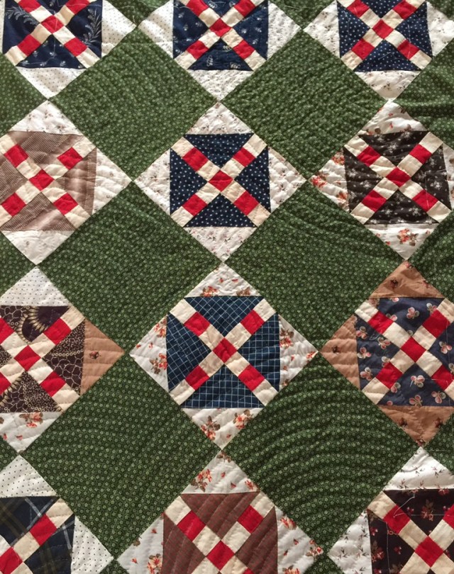 I used to do a lot of hand quilting, but haven’t done so in many years. Until this week. I started working on my antique top. This is how far I have gotten.