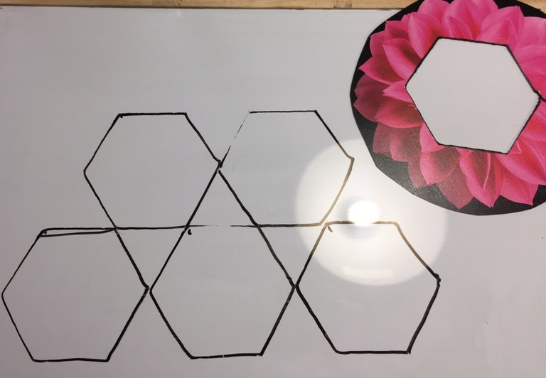 Now I have to decide how to quilt it. I used an old calendar to make myself a stencil so I could use my little white board to try out some ideas.