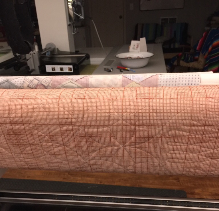 I’ve also started machine quilting the QOV. It is mostly ruler work and slow going.