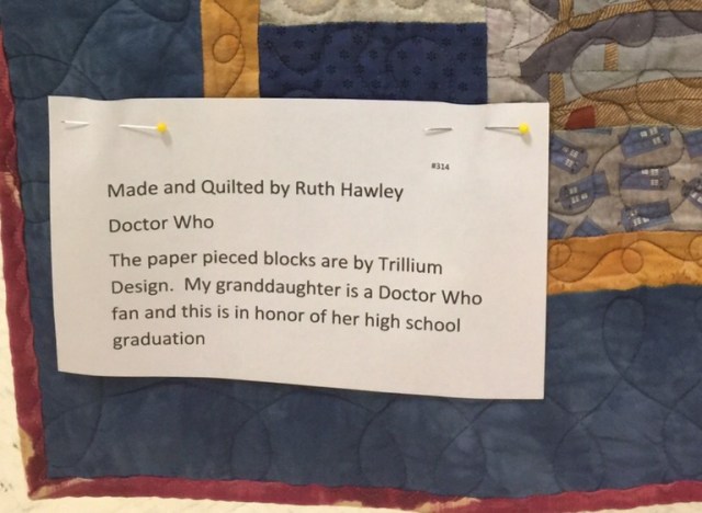 There were so many beautiful Quilts! I thought I would share a few with you today and some more in a second post. I’ve included close ups of the labels to give credit to the makers.