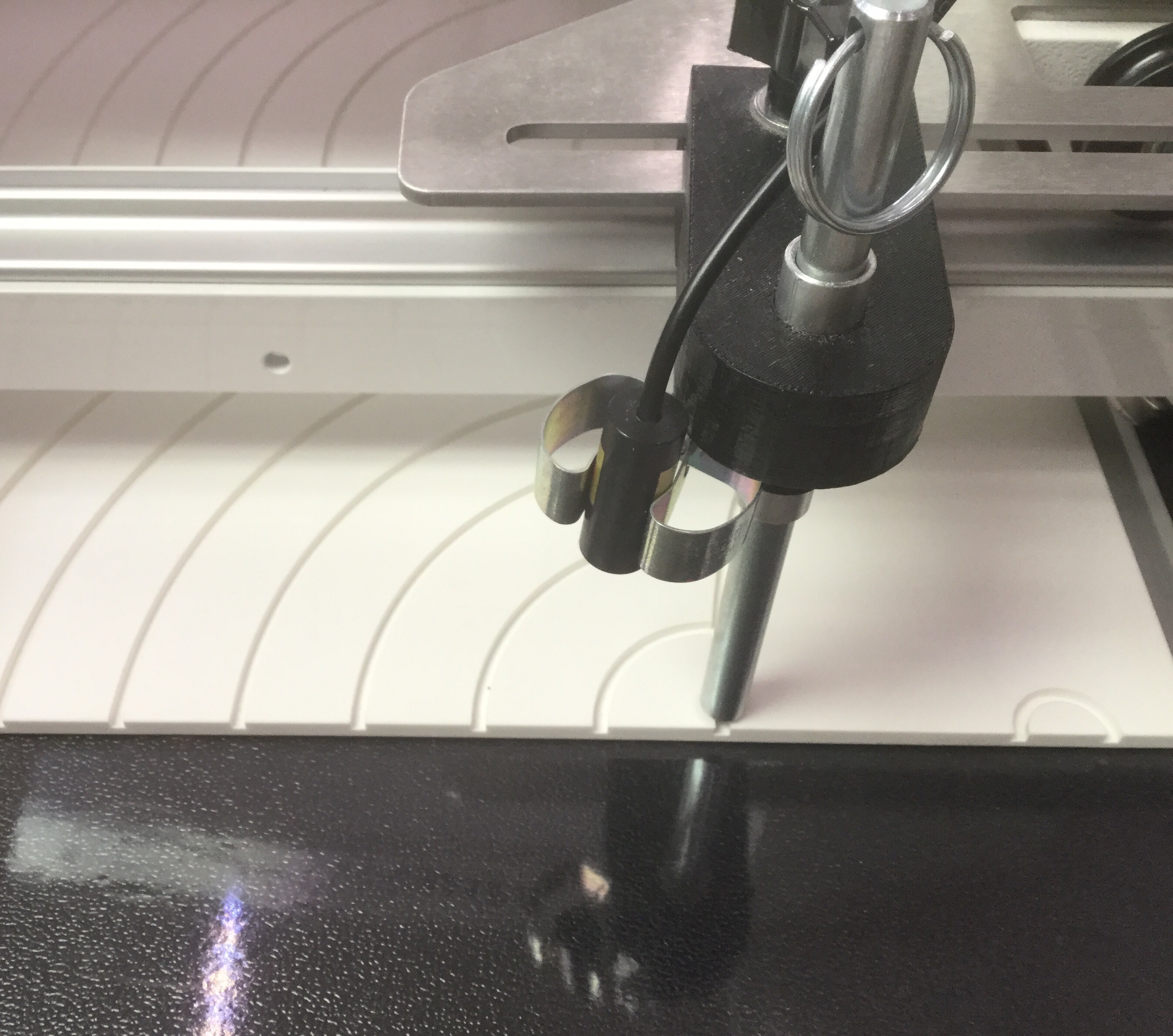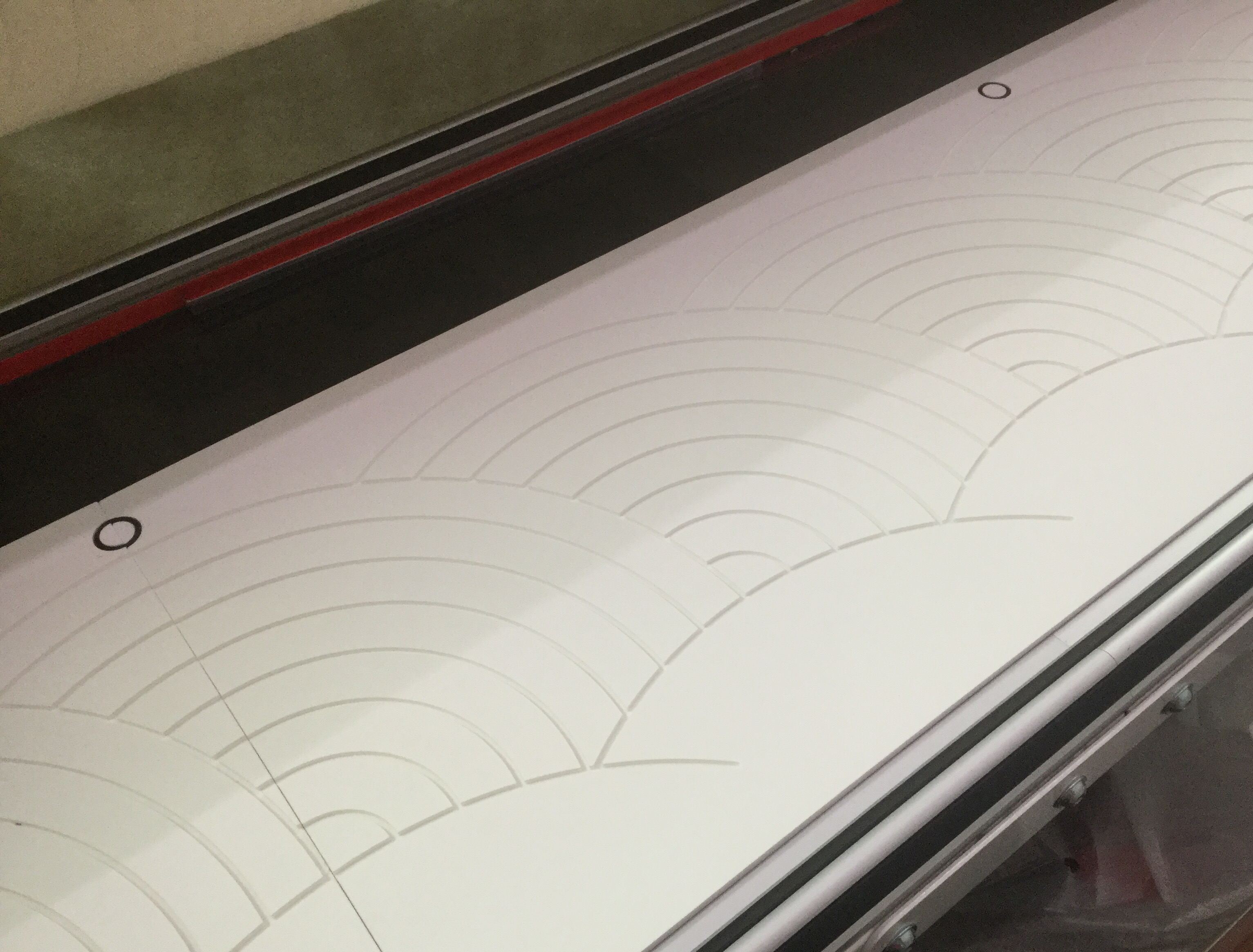 It’s a bit like using the laser light to follow a pantograph, but instead of a light, there is a stylus that fits in the grooves of the boards. I have four of the fan boards and that was just enough to do this quilt.