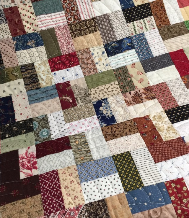 Katy, this turned out to be an awesome quilt….I see a number of fabrics in it that I have also! But I don’t have your binding fabric….love it! I am like you in that I have a hard time using up the last of a fabric I love…. I think the Baptist fan was a good choice for the quilting on this one…cannot wait to see it all finished! I know I have said it many times before, but I have to say again how amazing it is that such a simple block can result in such a beautiful quilt…same with the quilting…I go to simple every time! Cannot beat it!!