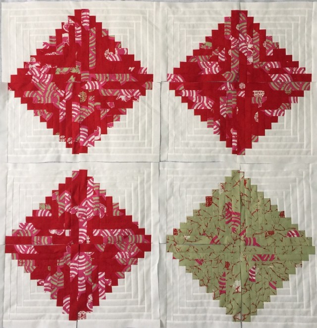 Wow, you’ve been busy. I love those log cabin blocks. I’m beginning to think Christmas already – yikes, I guess I should wait for my tulips to come out first!