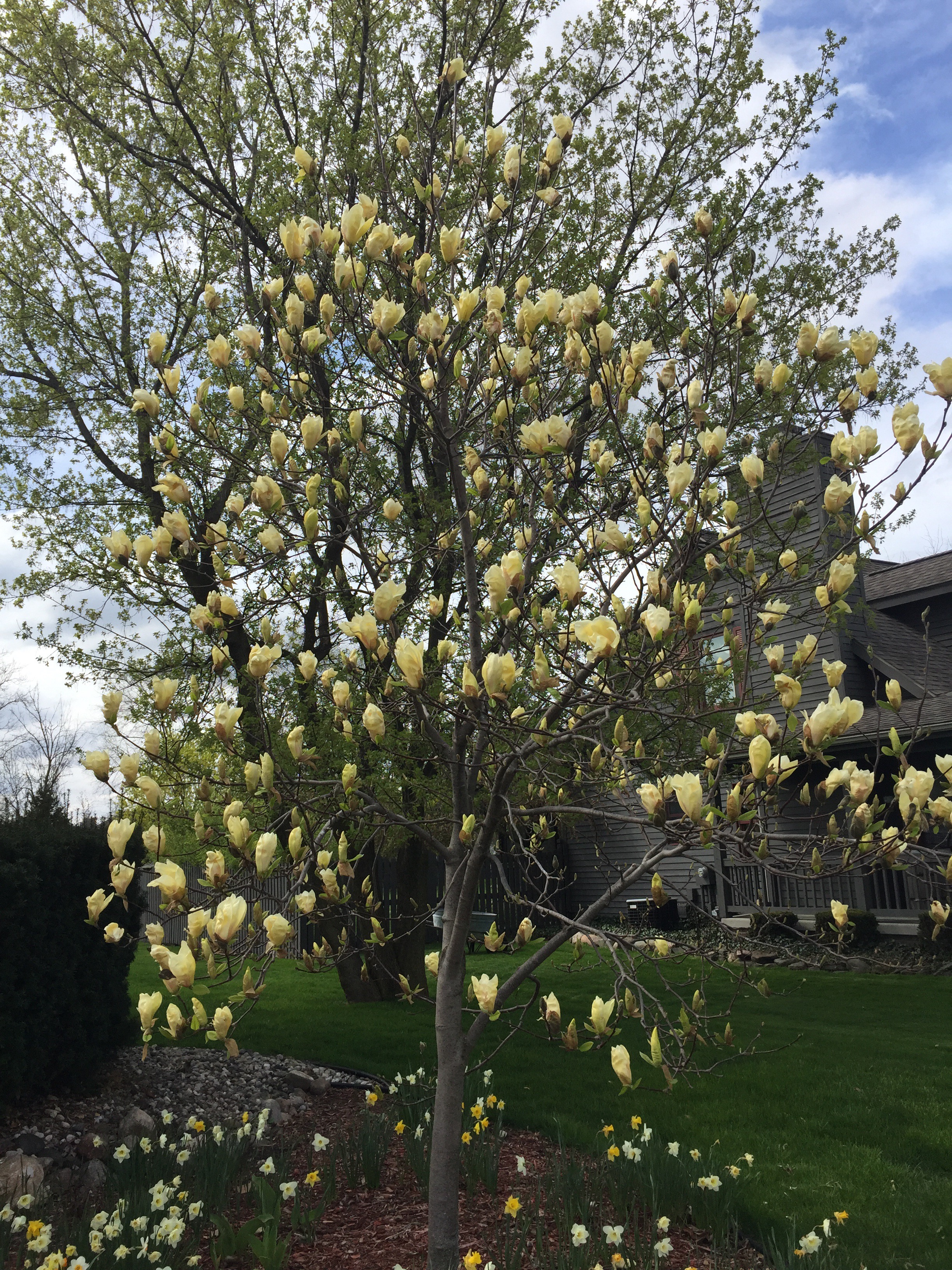 Oh my! You have a Magnolia tree in yellow! We have lots of the pink ones here in Maine but I have only seen one yellow. I am green! Your “spring” yard is beautiful. Have fun with the wedding.