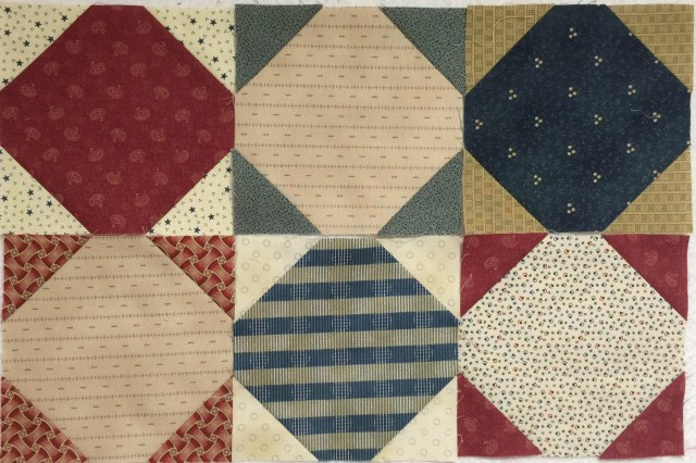 You made a lot of progress! I just started making those blocks in the middle, last night. They were called Old Italian blocks and will finish at 6″. Is that what yours are called? What size are they? Thanks Katy.