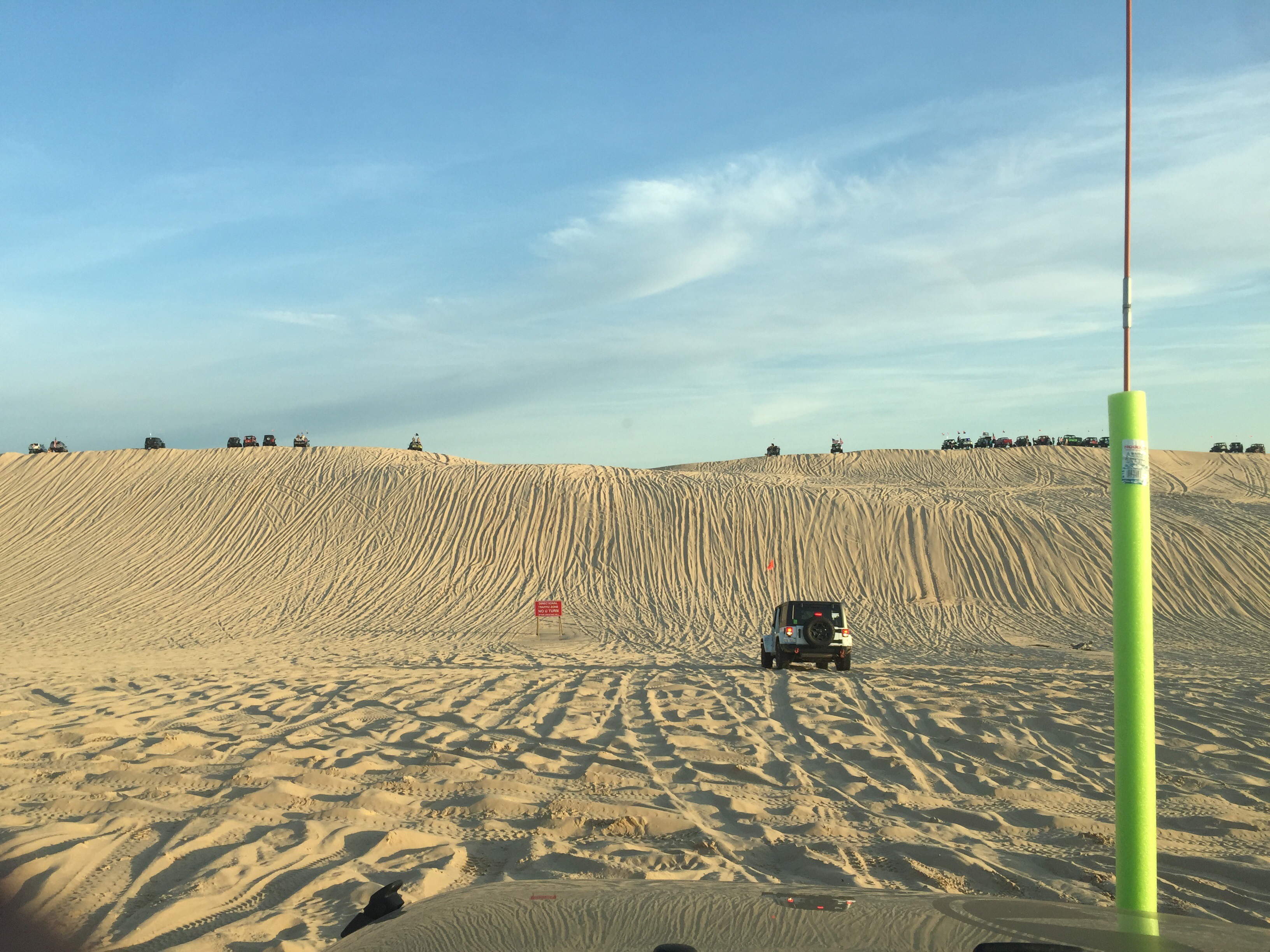 I spent a lot of time watching YouTube videos and reading the Wrangler forums for info on off-roading in the sand. But nothing can really prepare you for the first drive down a hill so steep that you can’t see the bottom! Or driving up one where all you can see is sky until you make it (hopefully) over the crest.