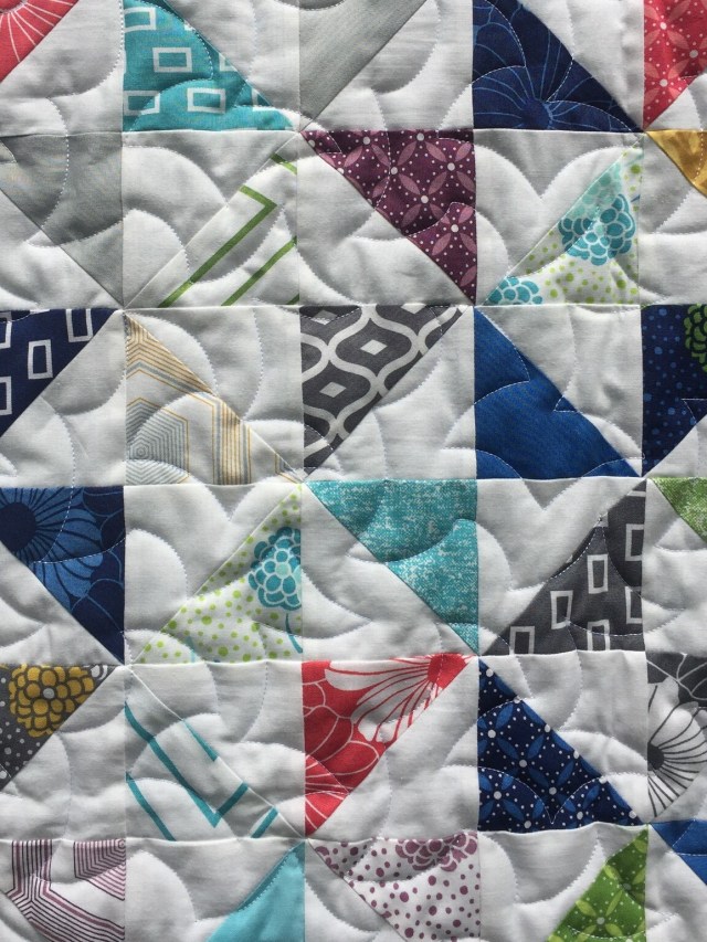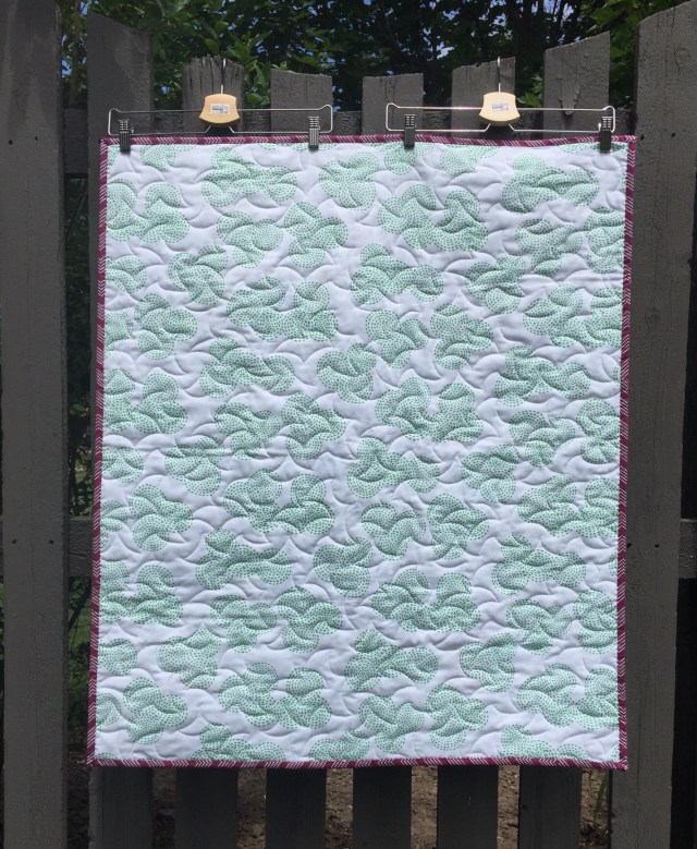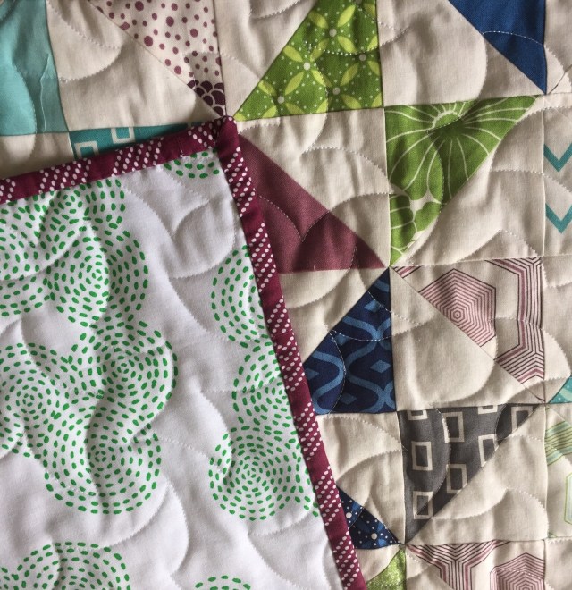 I finished the binding on this baby quilt while traveling. I like having baby quilts on hand for gifts so this is another to add to that pile. I gave two away last month.