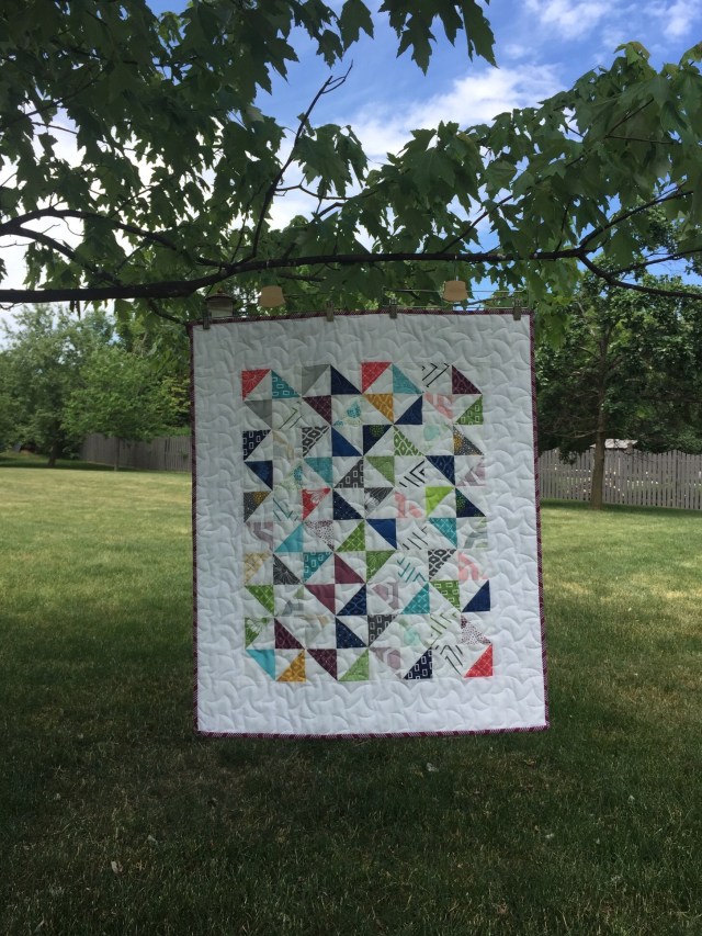 Katy, what is the finished size? I love the colors; such a simple design but it really pops with those little triangles of color. This will make someone very happy!