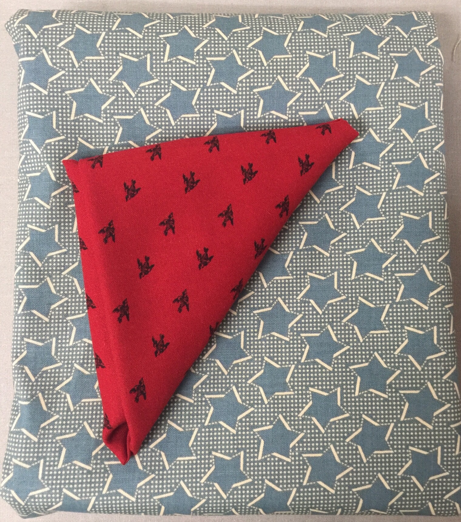 Yep, had to have this pattern! I won’t buy any others but I couldn’t pass up a Jeep pattern! I also got a few yards of this blue and the FQ of red was a gift from my friend. Thanks, Pam!