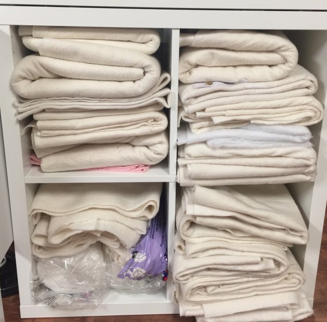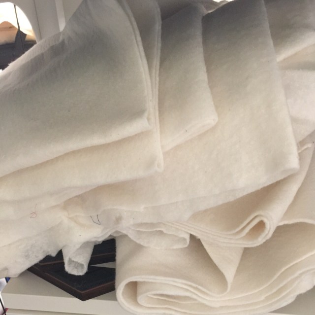 I told my friend how I really needed to do some serious work organizing my sewing room. Sometimes just putting that out there can motivate me to start. I came home and started tackling the out of control batting scraps. I had several piles that looked like this:
