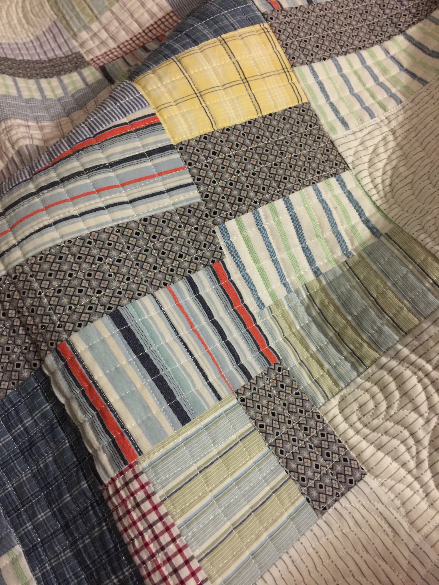 Thank you for such a sensitive blog. Both quilts are lovely and the idea of using scraps in that way is wonderful. I’m glad you have shirts from each dad because someday you will want to work on them and they will bring smiles and wonderful memories.
