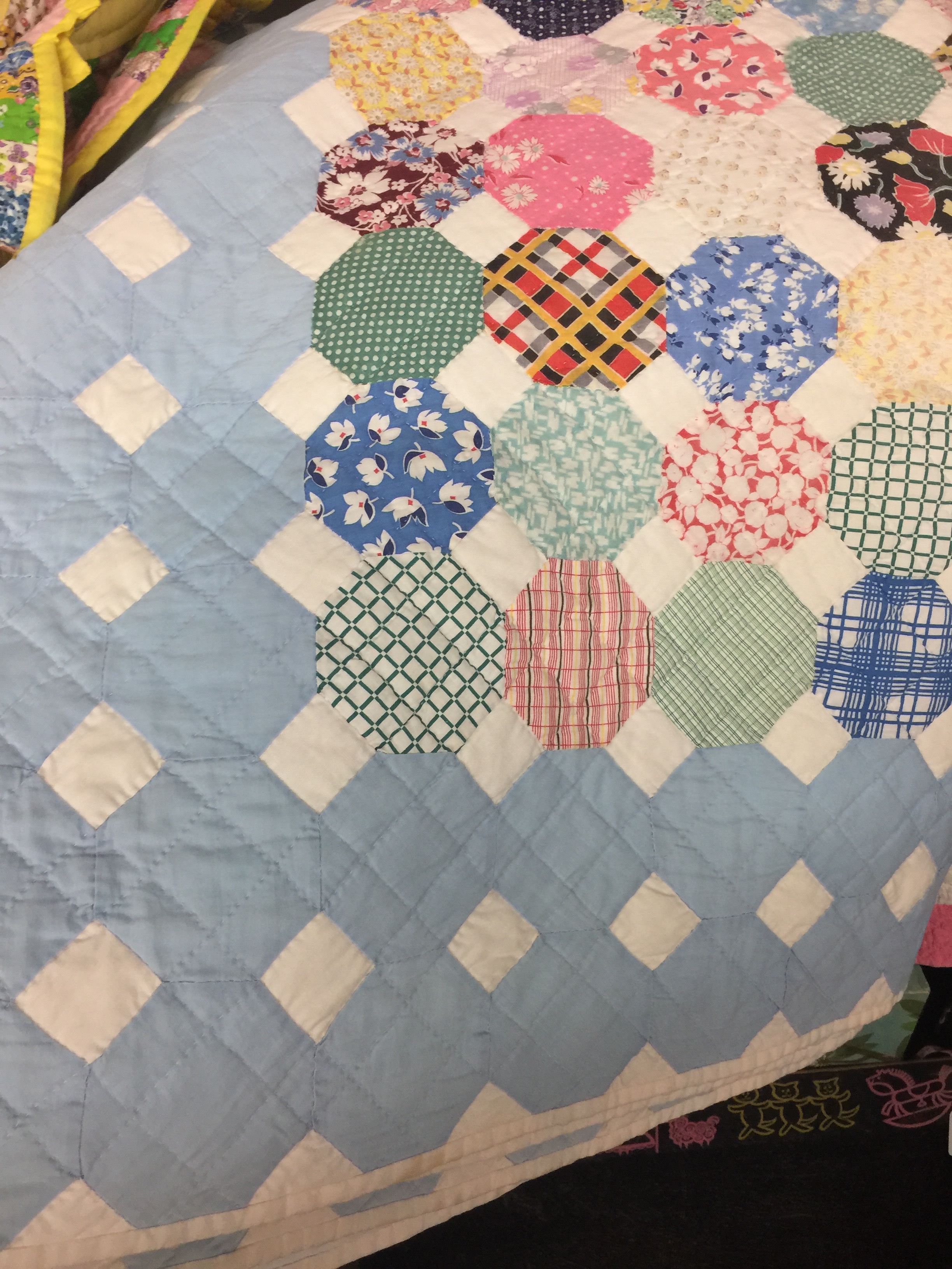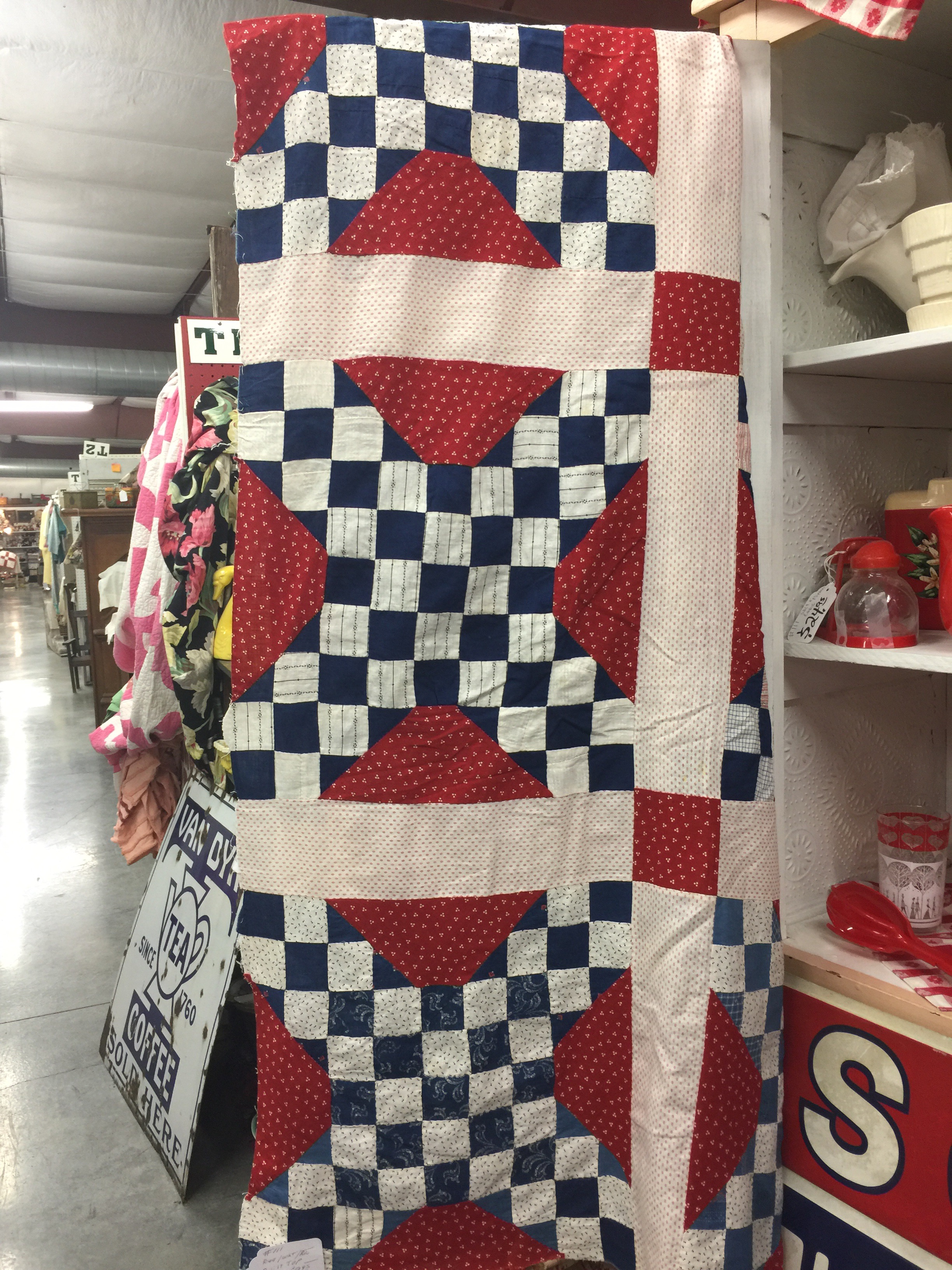 I saw so many interesting quilts while we were traveling, that I ended up splitting my pictures into 4 posts! I love vintage quilts. I don’t feel a need to buy them all, bug I do enjoy taking pictures for future reference.