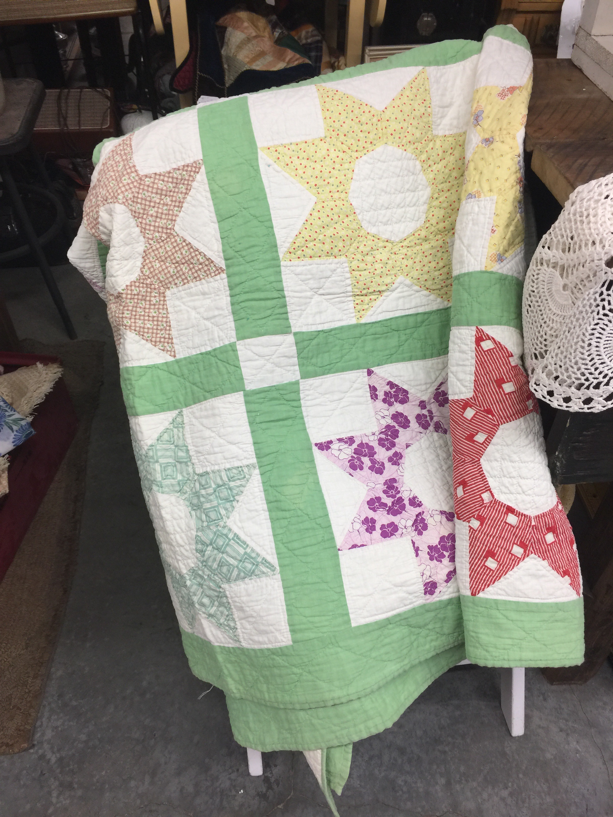 They are really pretty quilts! You passed up the quilt with the baptist fan quilting?? 🙂 I think I would’ve wanted to come home with all of them!