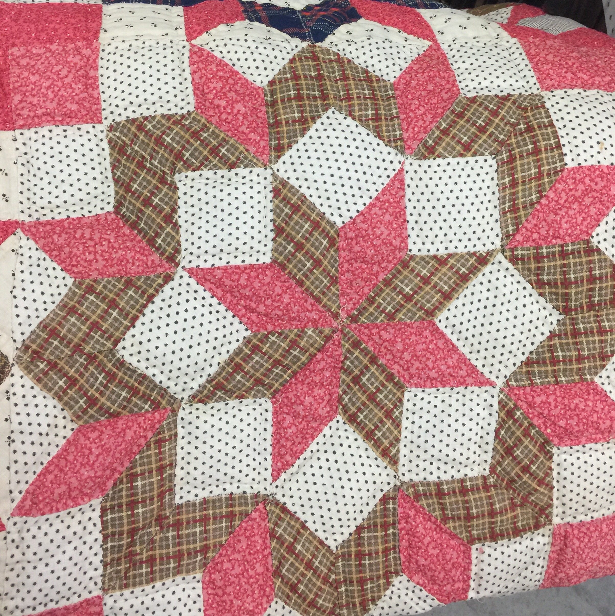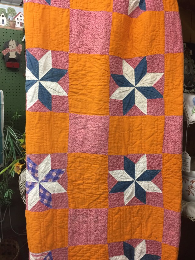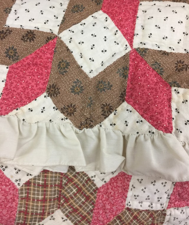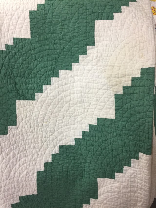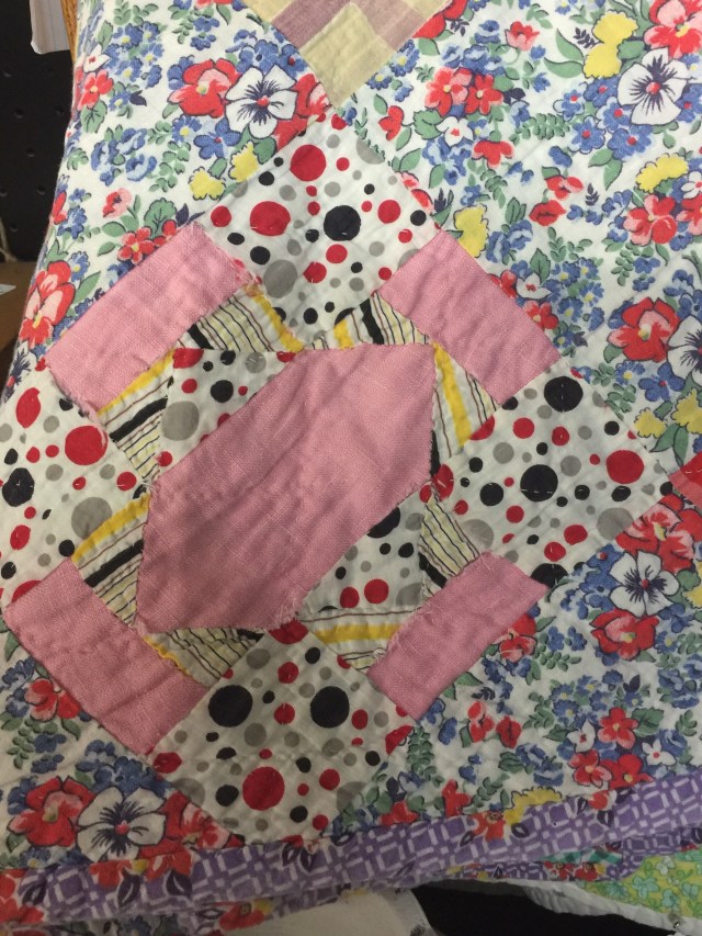 I both loved and hated this next one. The top itself was very old and beautifully pieced, but someone had finished it fairly recently. By fairly recently, I mean since poofy poly batting became available. Ugh.