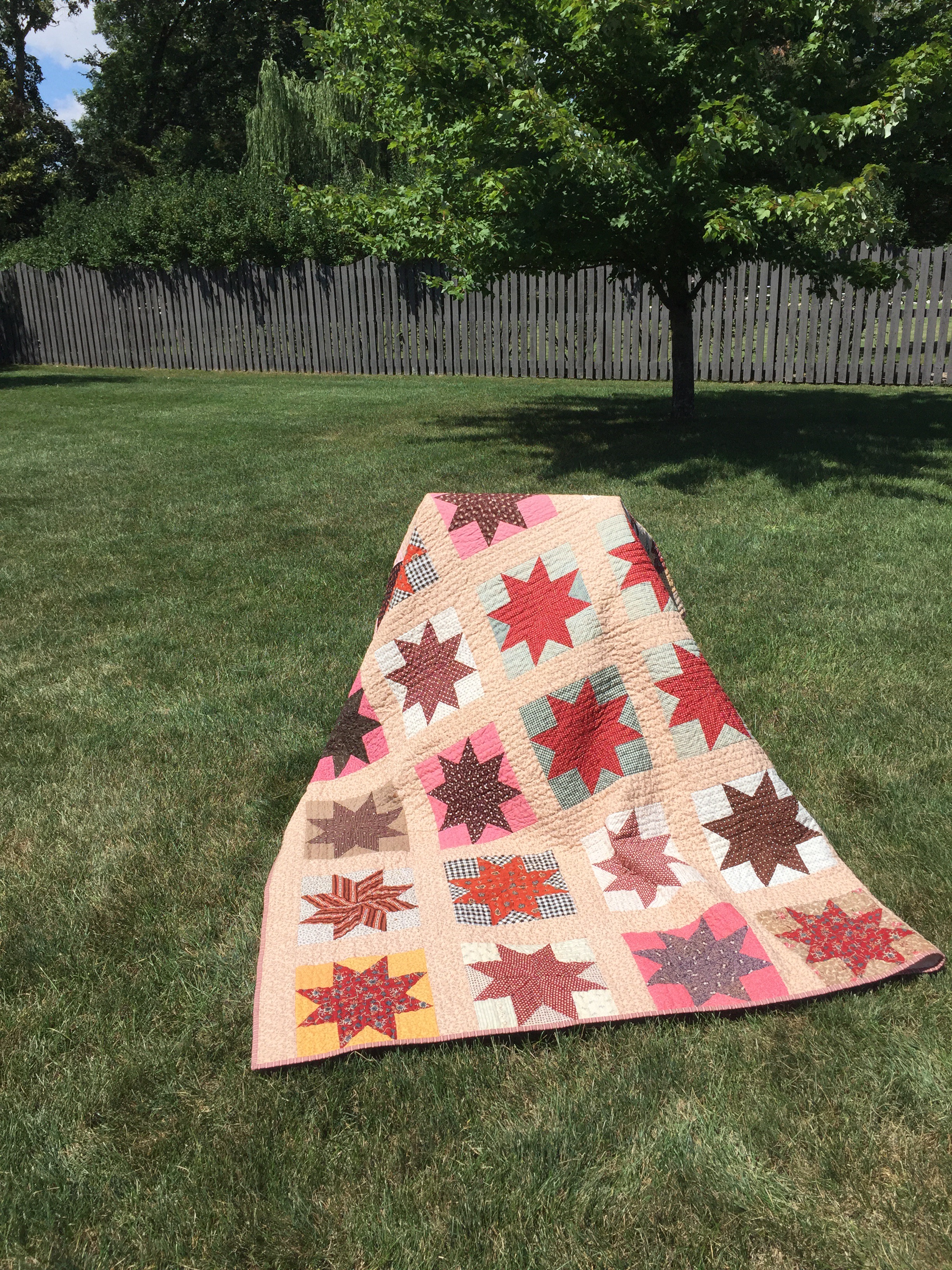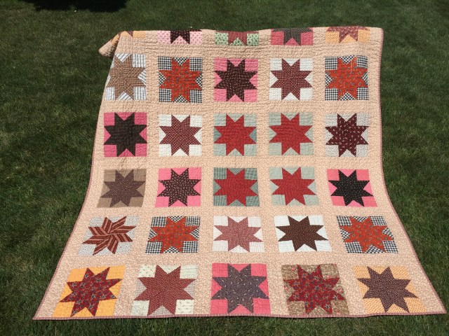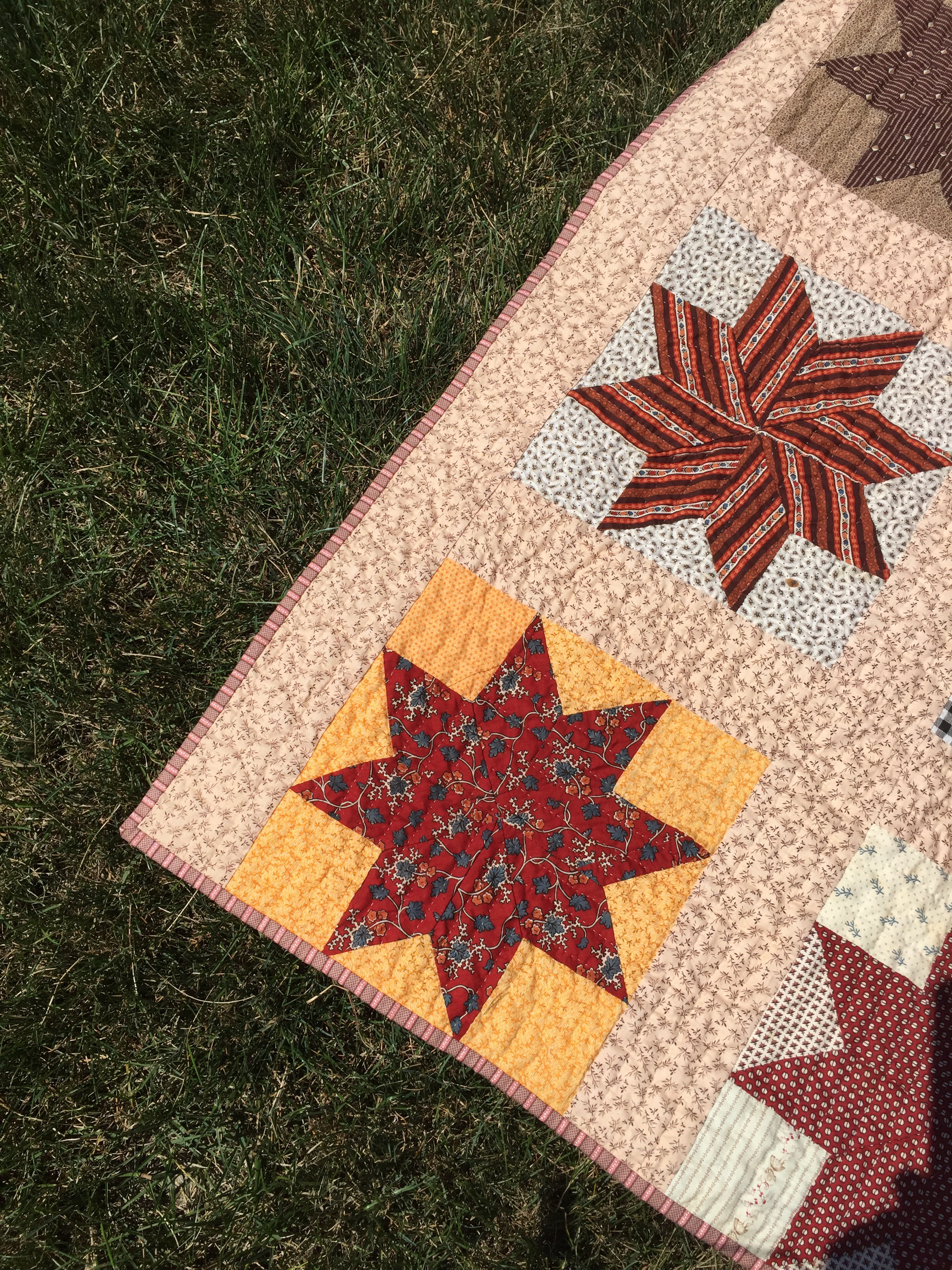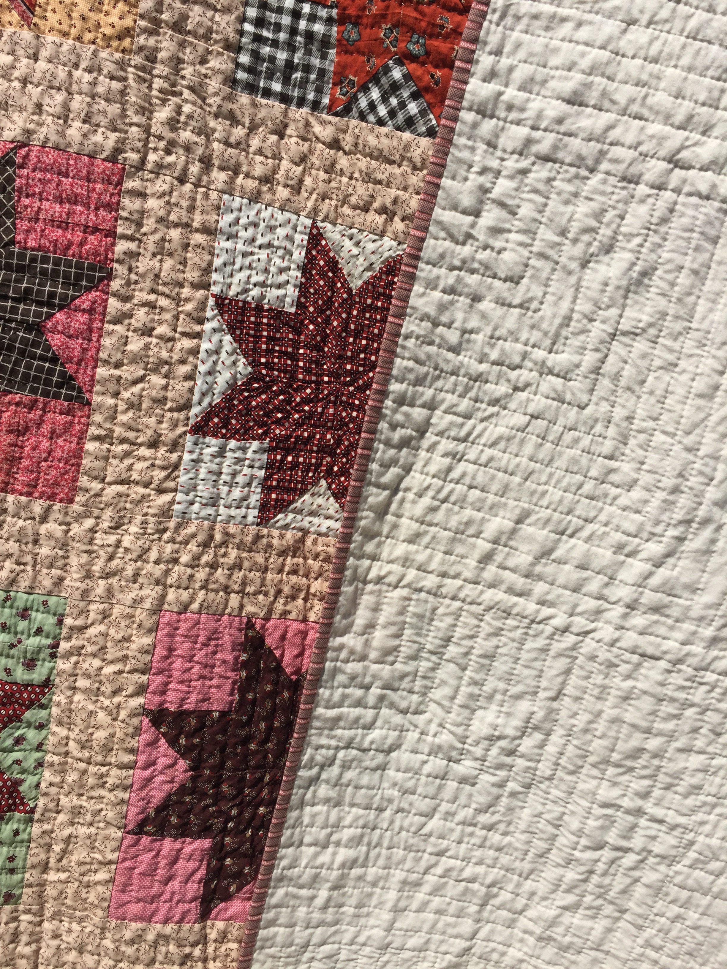 The stars were all hand pieced and they were put together with the sashing by machine. This leads me to believe that I am the third person to work on this. What joys and sorrows might they have experienced during their stint?