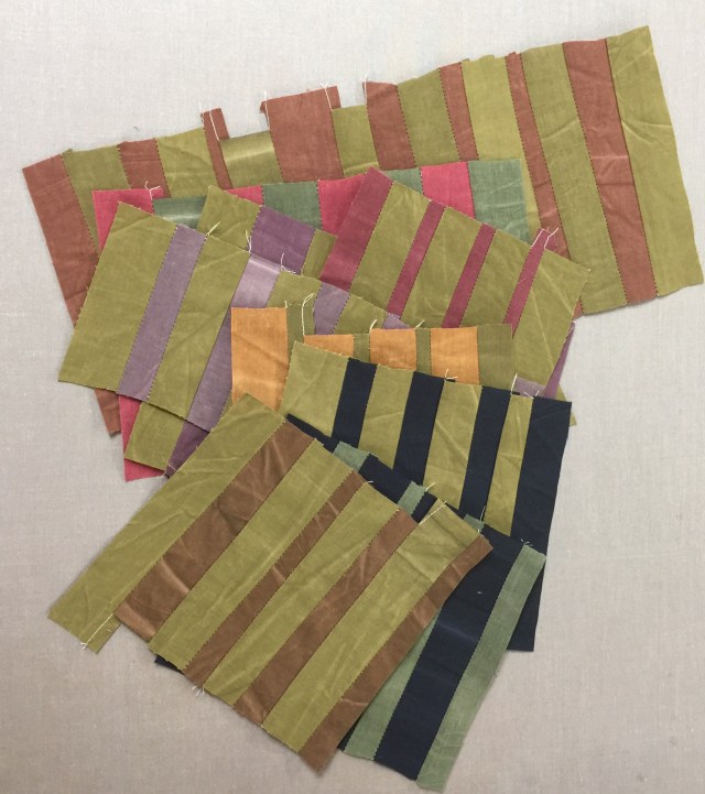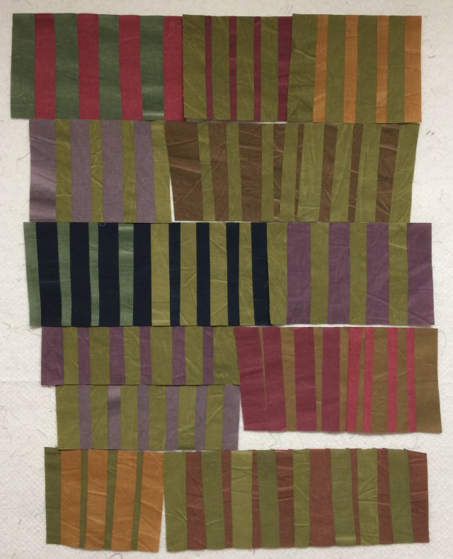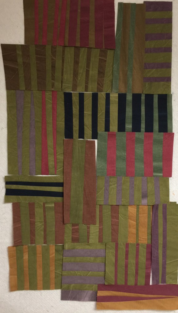 Debbie from A Quilter’s Table is hosting a QAL on her blog and Instagram this week. It is called the Improv Stripes QAL. I’ve done quite a bit of work like this in years past and thought it would be fun to play along. I grabbed this little bundle of scraps out of a bin to use. These are from the Marcus Aged Muslin collection.
