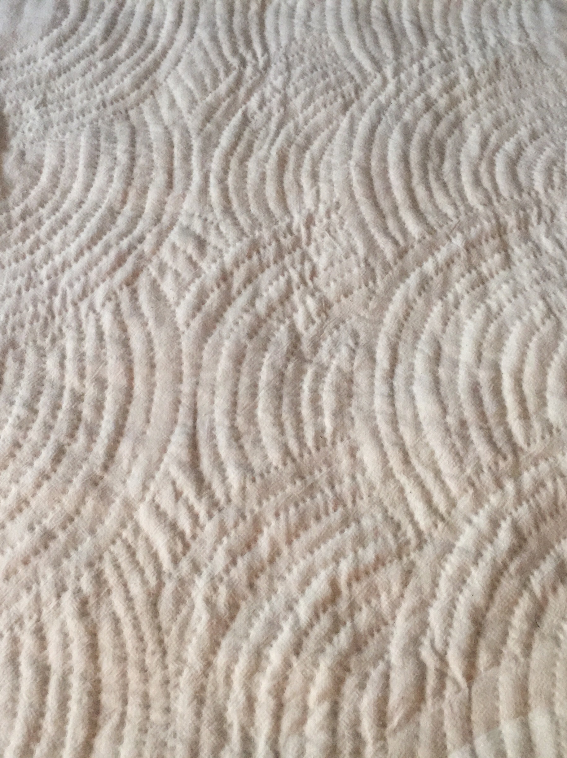 Enjoy your binding – love to see how the quilt comes together with the binding attached. Really enjoying seeing the texture the fans bring to your quilt.
